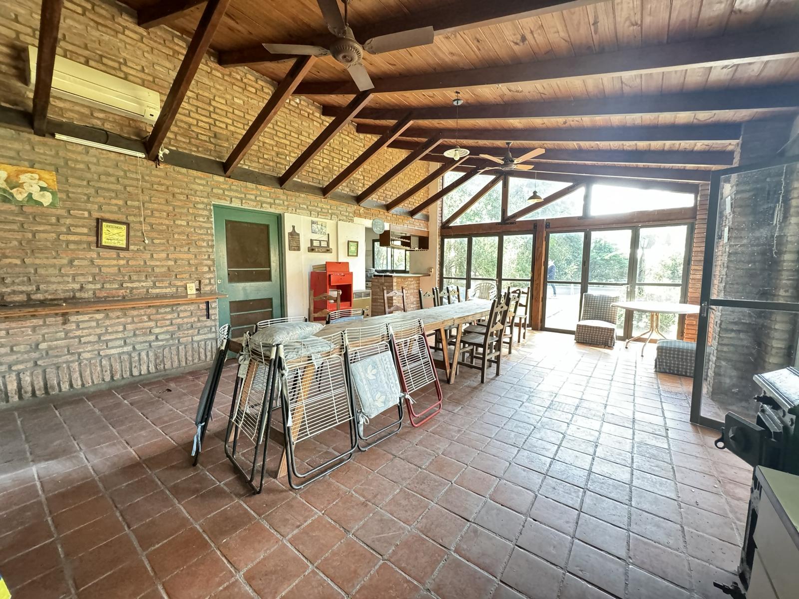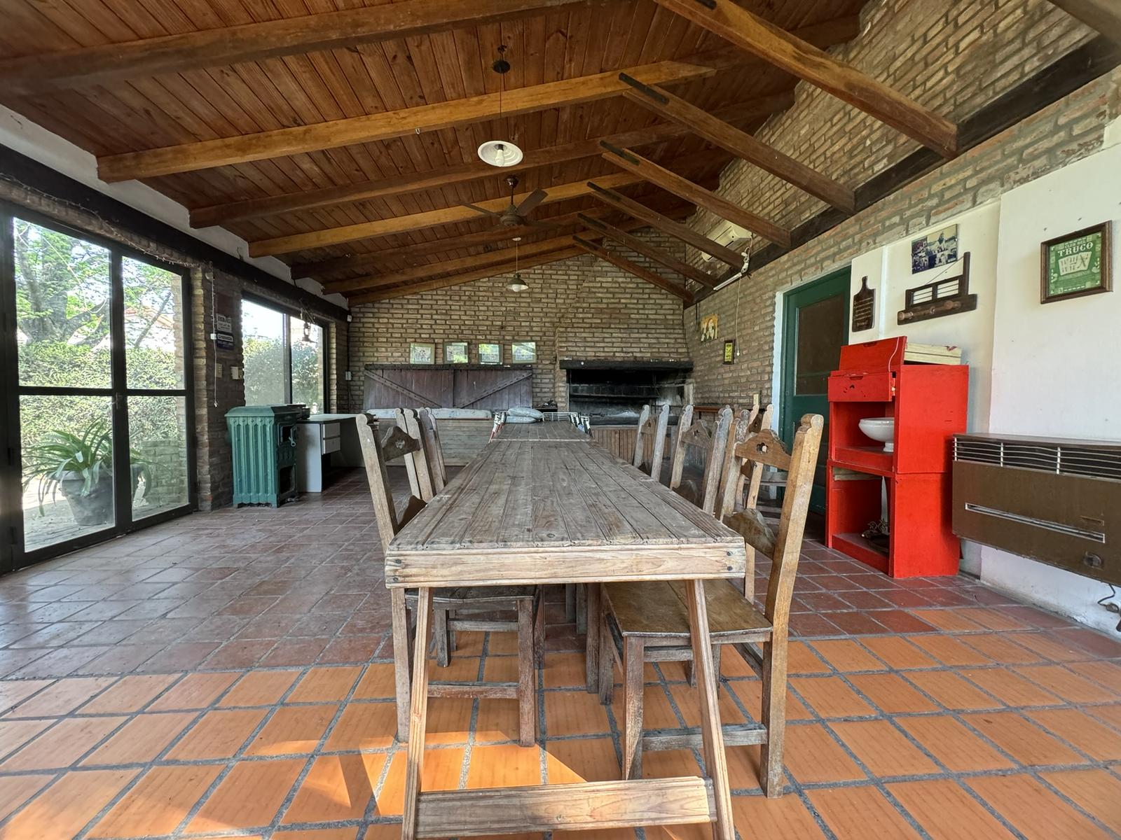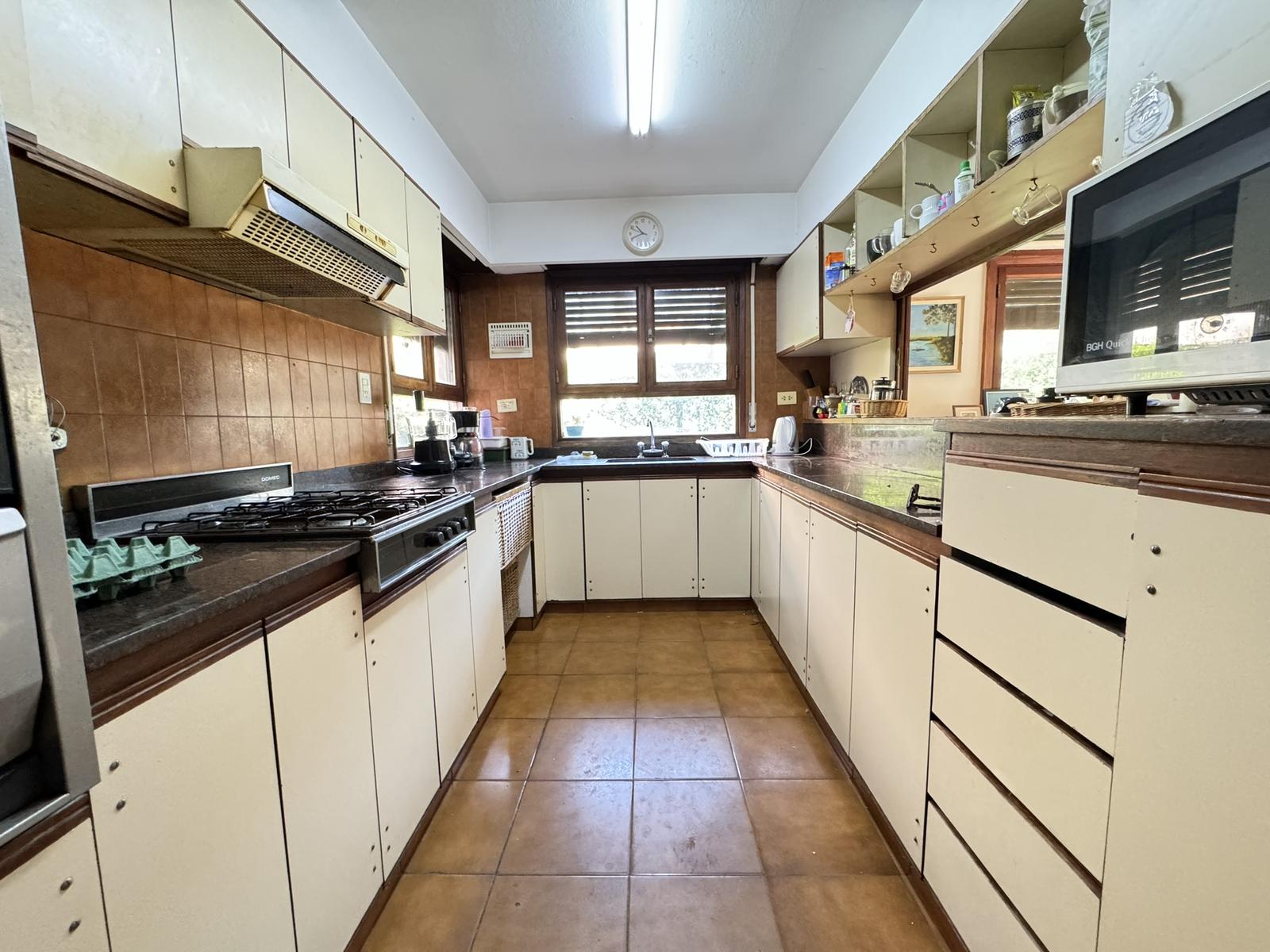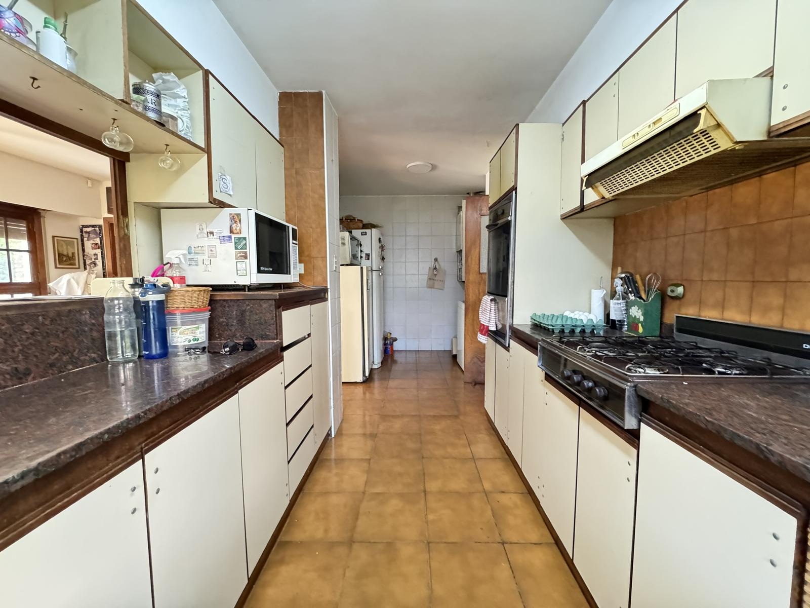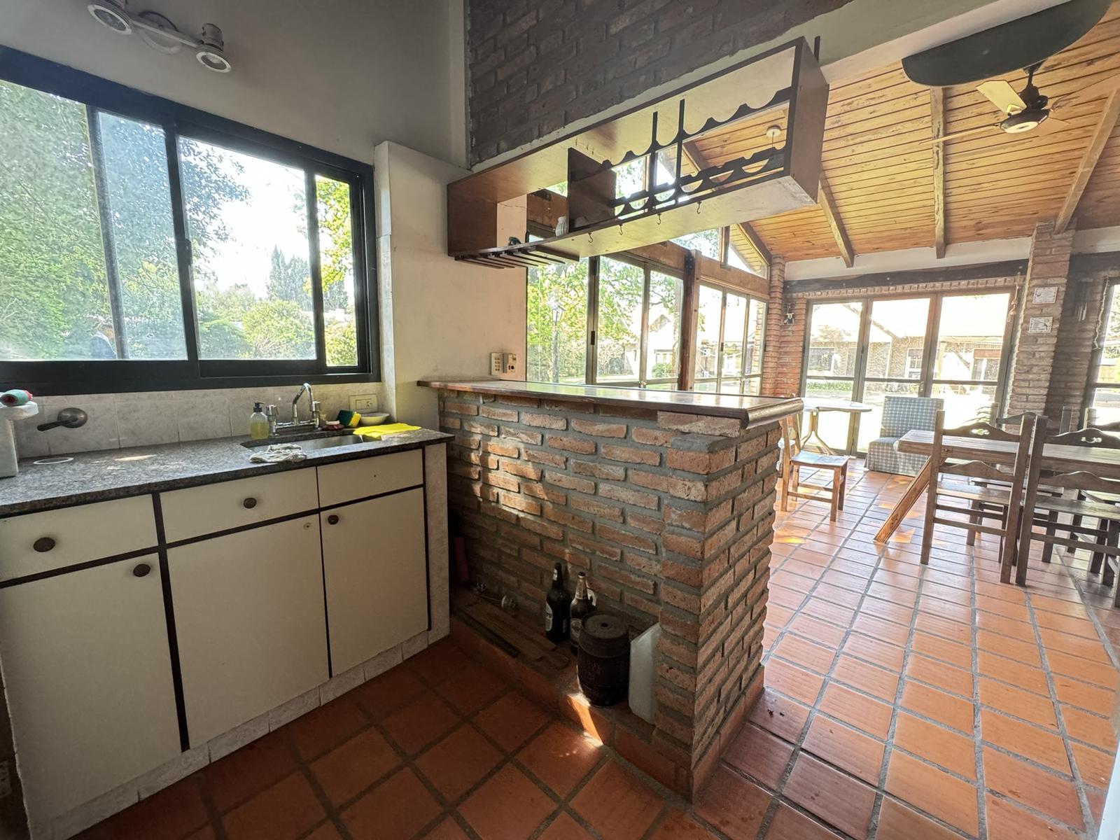 Descripción de la unidad: Increíble casa al frente desarrollada en una planta con 5 dormitorios y 3 baños distribuidos en 2 alas. El ingreso al inmueble es por un hall de recepcion, seguimos por living muy espacioso con hogar y grandes ventanales con vistas al jardin; comedor diario de grandes dimensiones y cocina independiente con lavadero sectorizado. Cuarto de guardado donde se encuentra el equipo de caldera, habitacio?n y ban?o de servicio.Del otro ala de la propiedad encontramos el sector intimo con sala de estar con hogar y mucho espacio de guardado. Dormitorios, el principal en suite. Cuenta con placard empotrado. Segundo y tercer dormitorio ambos con placares completos. Dos ban?os completos. Escritorio. Altillo con posible funcio?n de otro dormitorio.La propiedad cuenta con un gran jardín forestado con piscina de natación, solarium y quincho; Este ultimo cuenta con parrillero integrado; barra con mesada, bacha y alacena, cuarto de guardado y baño con ducha.El ingreso a la propiedad cuenta con un espacioso jardin al frente con cochera pasante para 3 autos y portón automatizado.