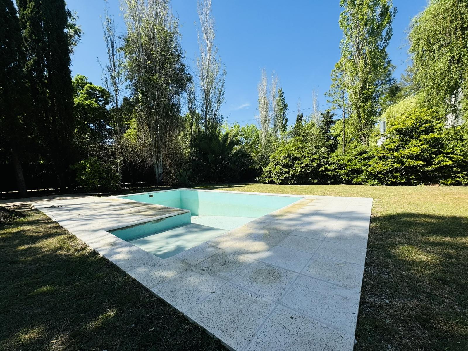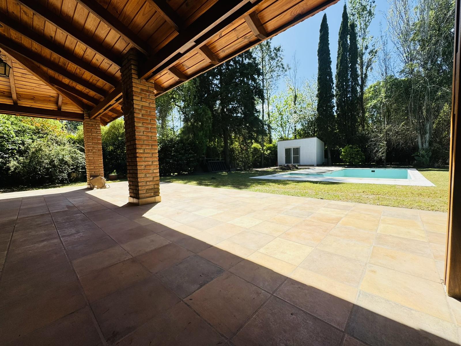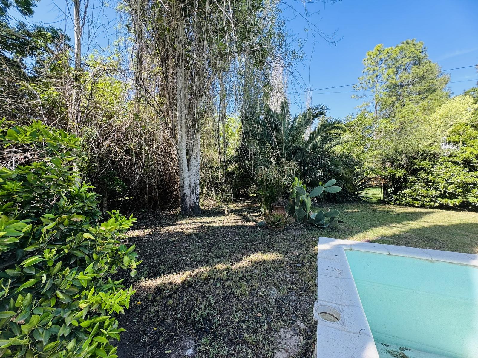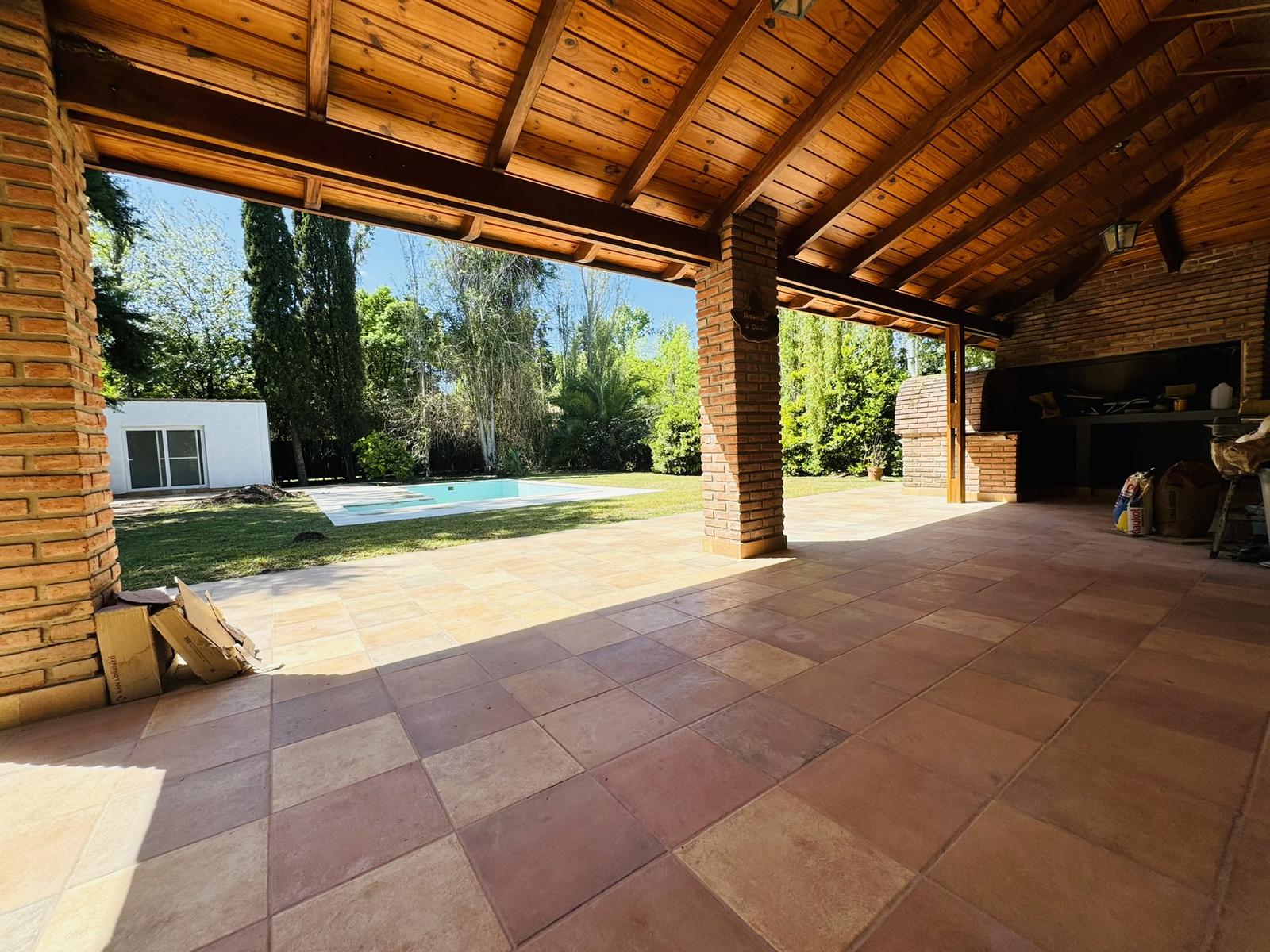 – Jardin: Galeria cubierta de grandes dimensiones con parrillero y mesada con bacha. Espacio de guardado. Piscina de material y cuarto de guardado.