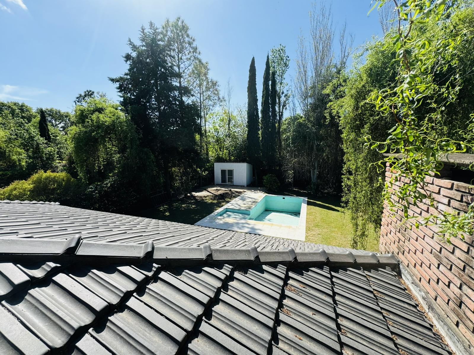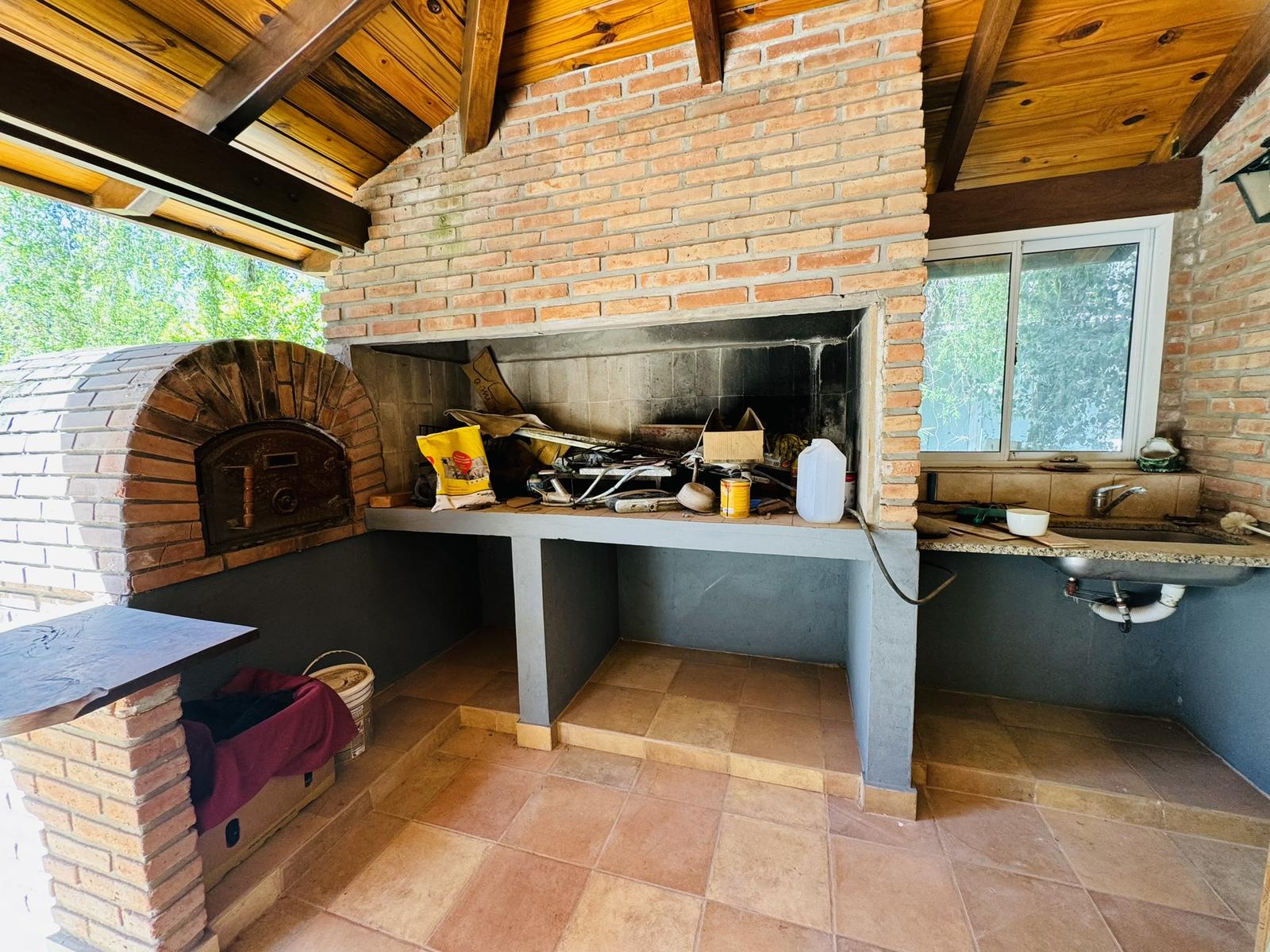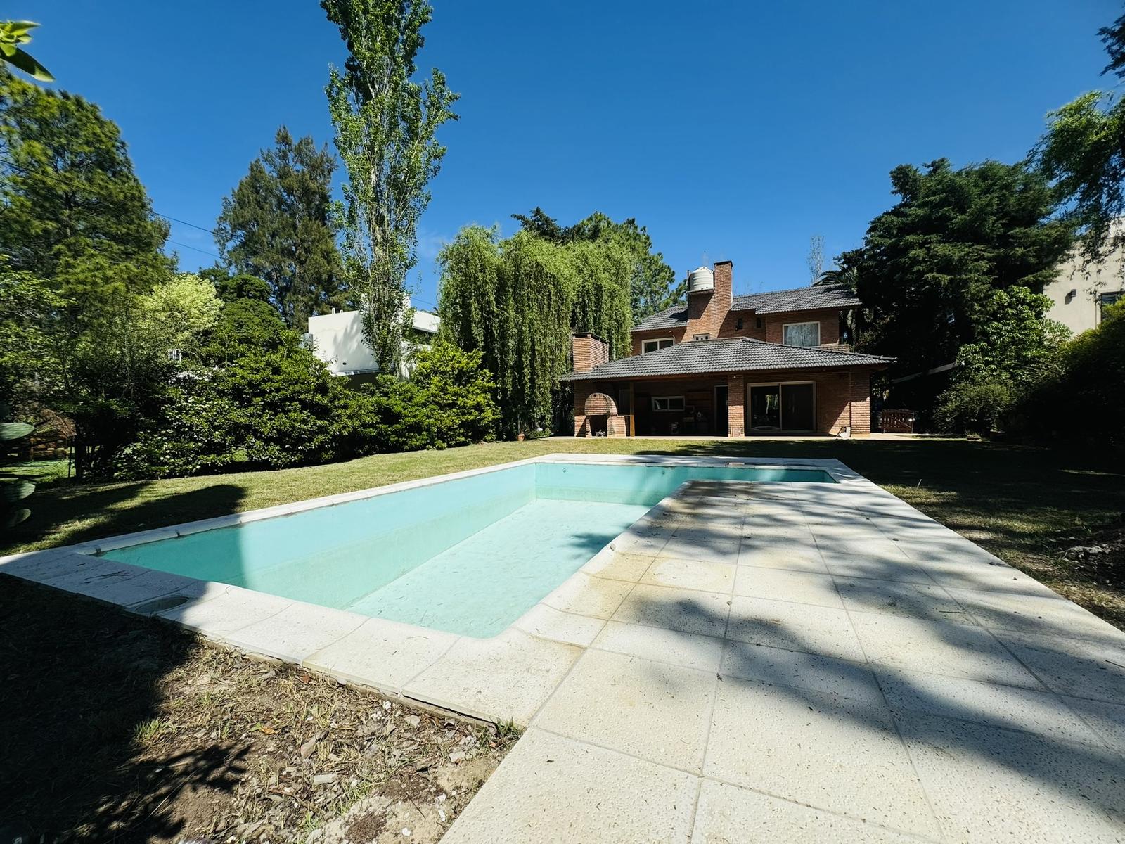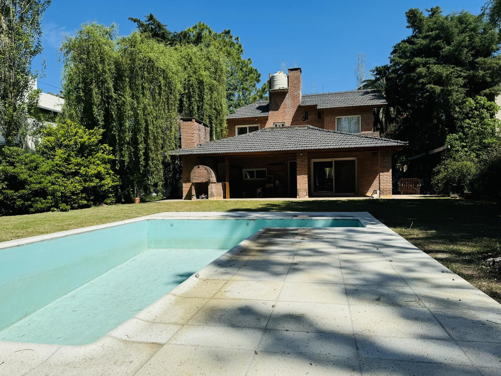– Jardin: Galeria cubierta de grandes dimensiones con parrillero y mesada con bacha. Espacio de guardado. Piscina de material y cuarto de guardado.
