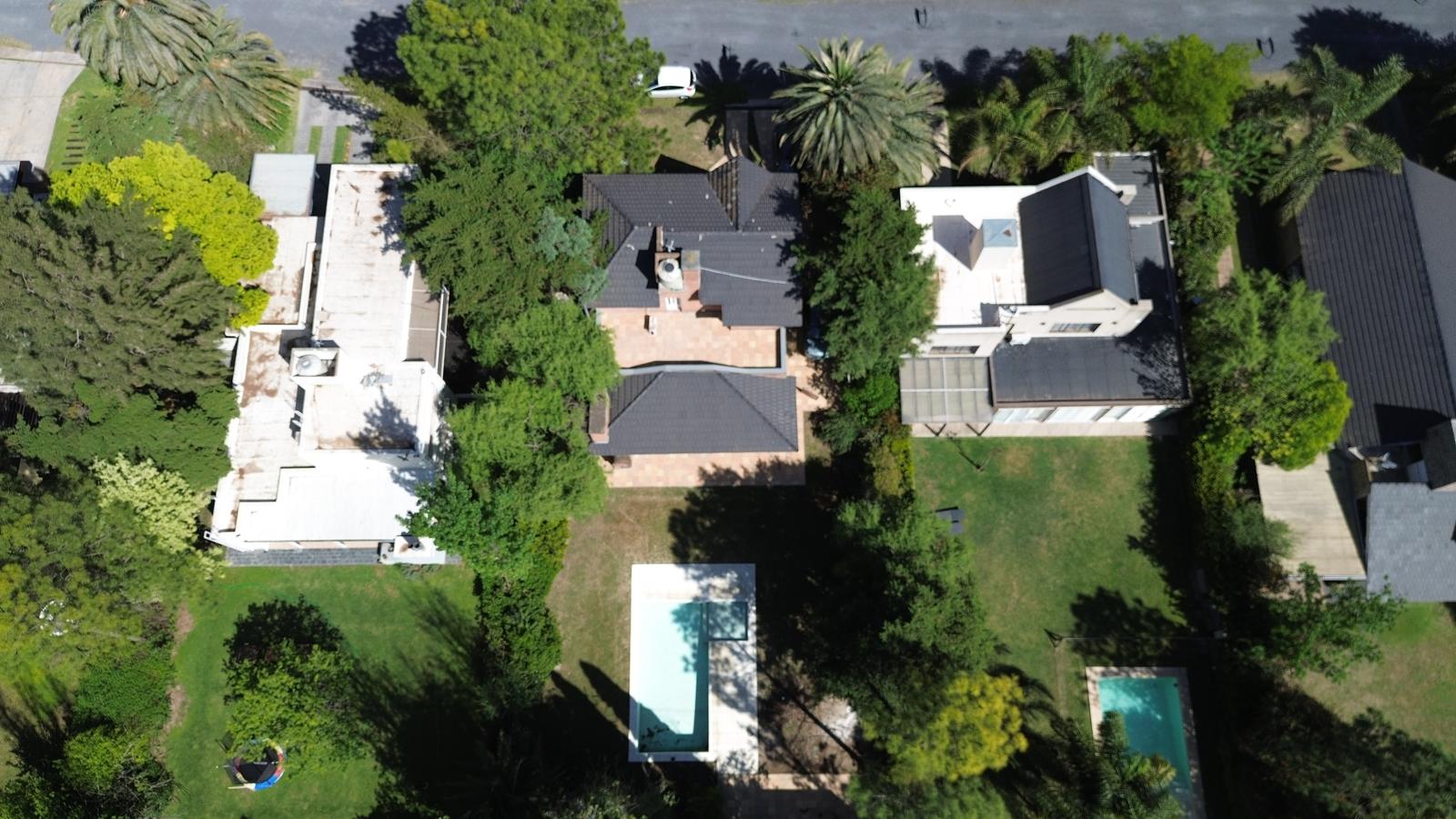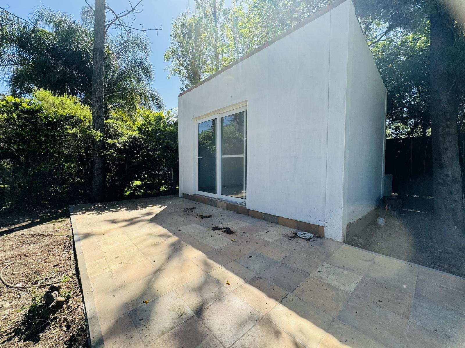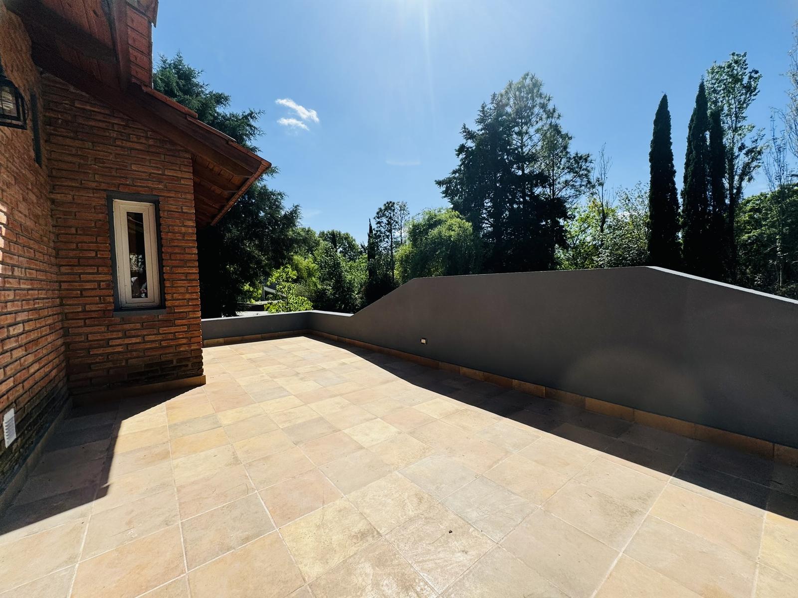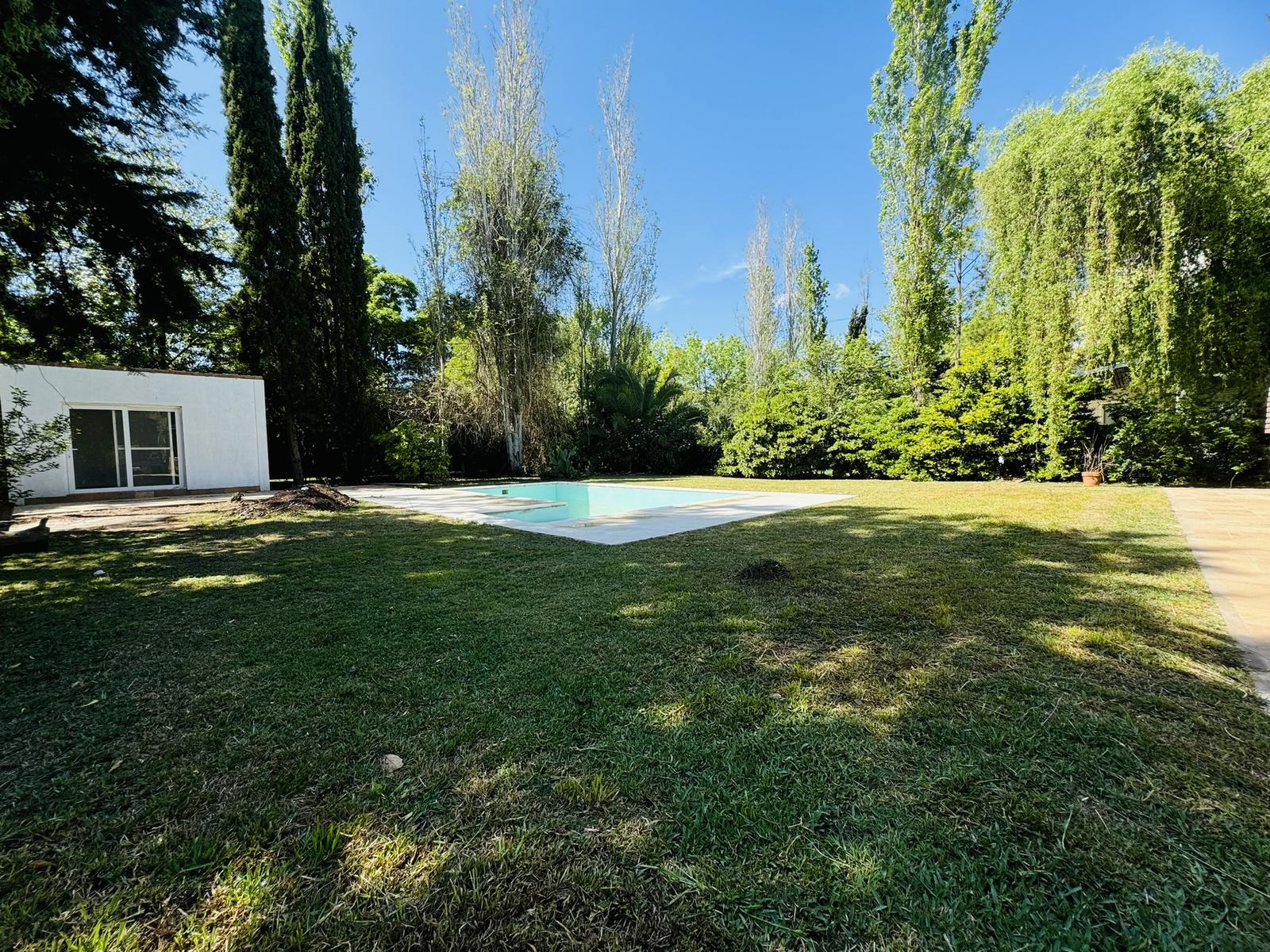 – Jardin: Galeria cubierta de grandes dimensiones con parrillero y mesada con bacha. Espacio de guardado. Piscina de material y cuarto de guardado.