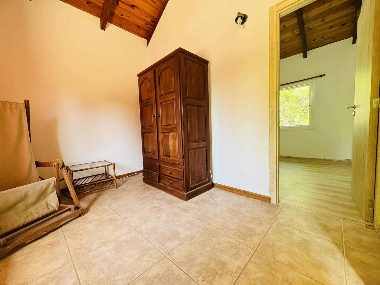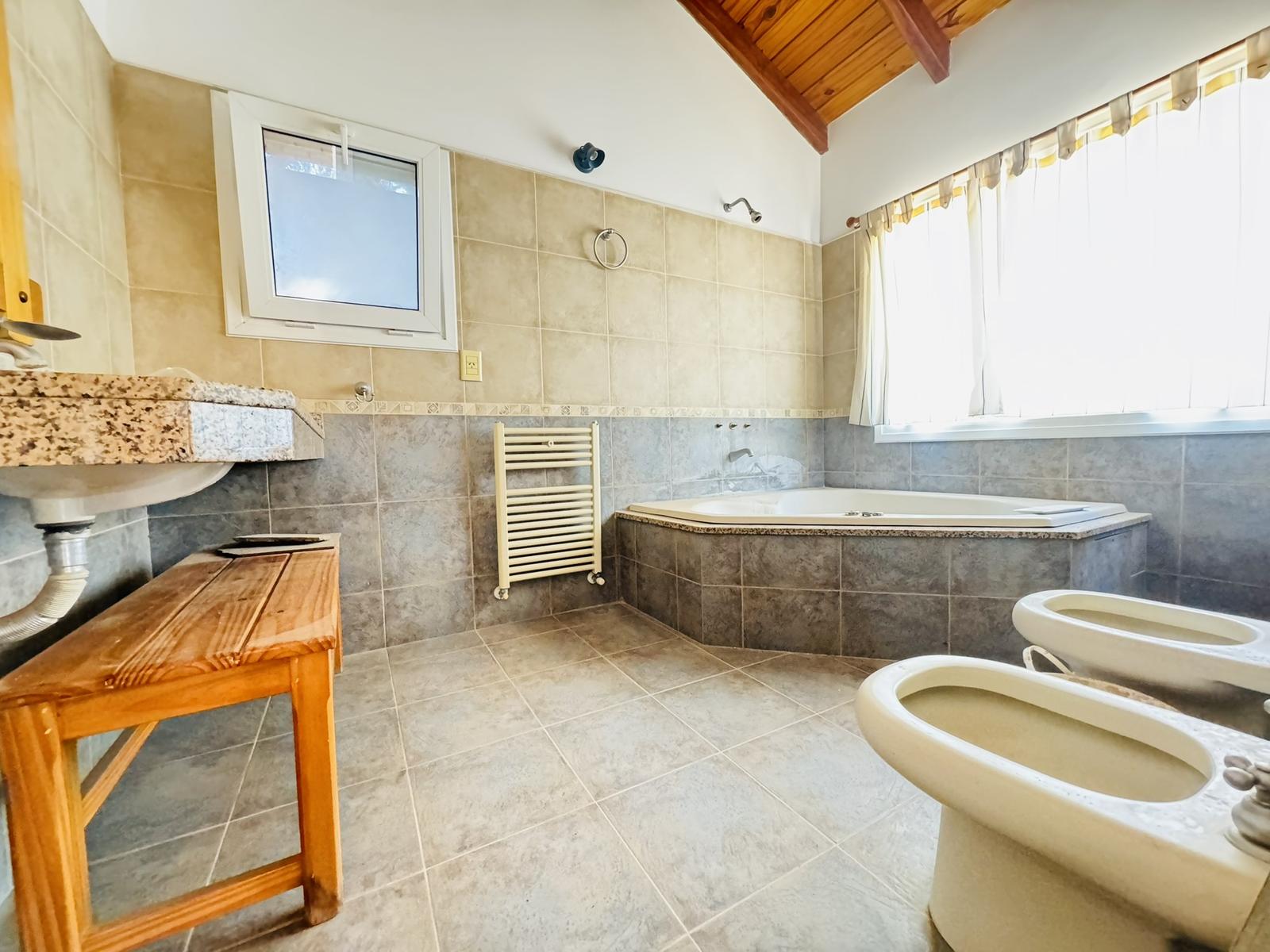 – Planta alta: Ingreso por escalera, que nos deja en hall distribuidor con ante-baño, 2 dormitorios, vestidor y baño completo con ducha y bañera con hidromasajes. Salida a terraza con vistas al jardin.