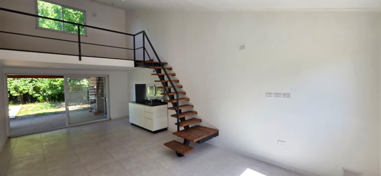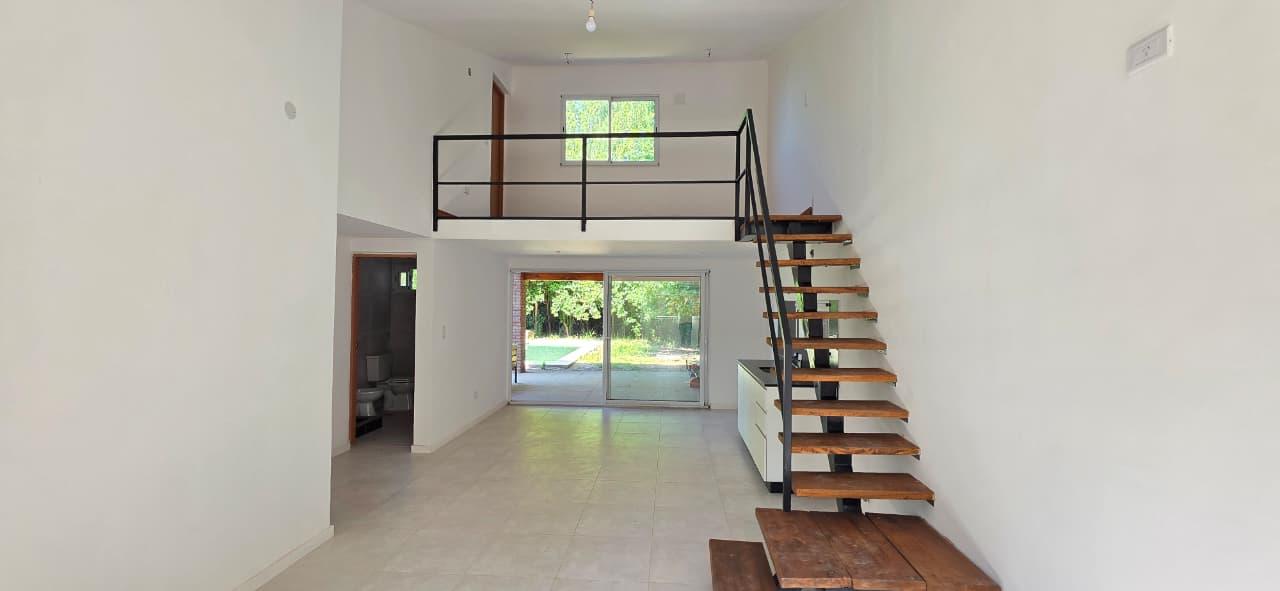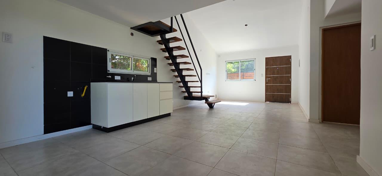 Descripcion de la unidad: – INTERIOR: Casa emplazada en 2 plantas que cuenta con 2 dormitorios en planta baja y comodín o 3er dormitorio en planta alta.Cocina integrada en planta baja con salida directa al jardín con piscina, quincho y parrillero.
