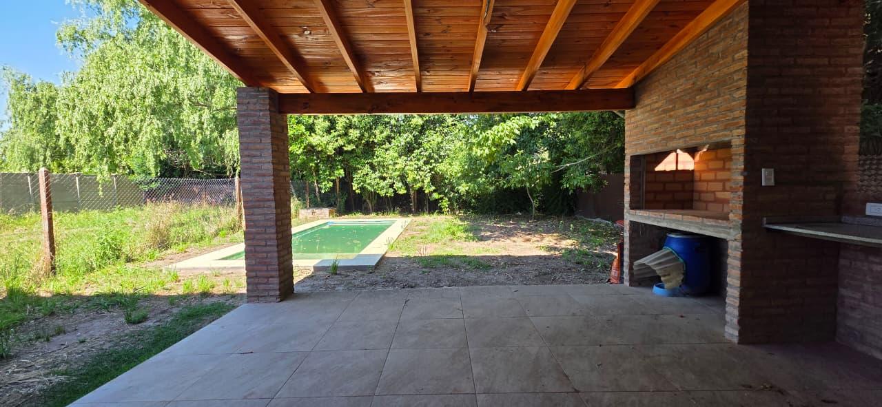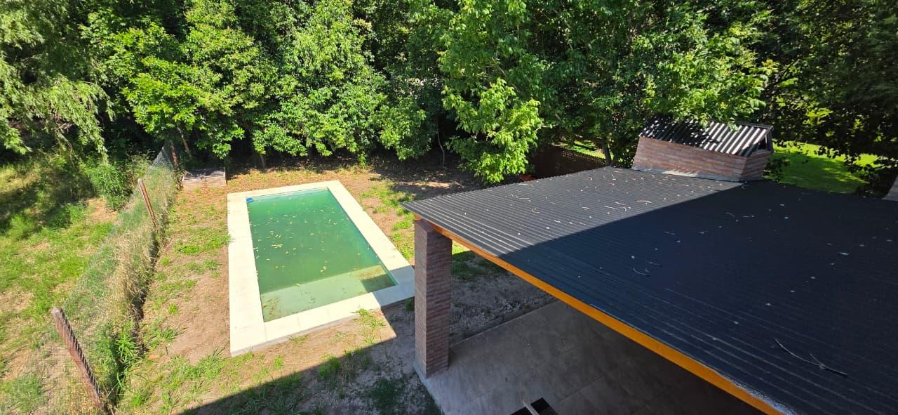 – EXTERIOR: En el ingreso a la propiedad, por el frente, cuenta con portón corredizo para el ingreso de vehículos, dándole la posibilidad de cochera a futuro.En la parte trasera de la propiedad, cuenta con galería con parrillero completo, espacio para lavarropas y bacha.Pileta de 2.5mt x 6.5mt con bomba ya instalada.Terreno forestado y cercado al 100%.