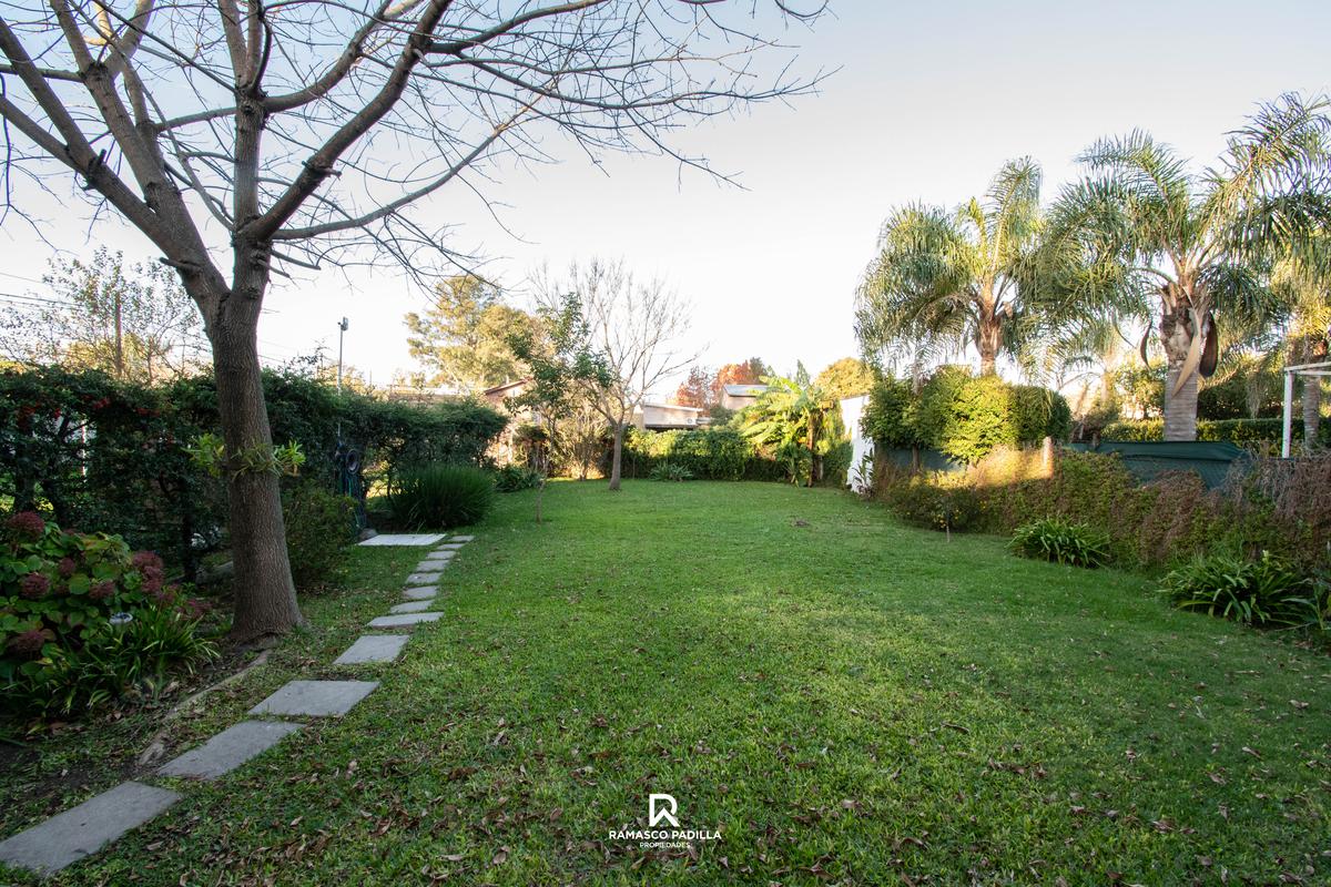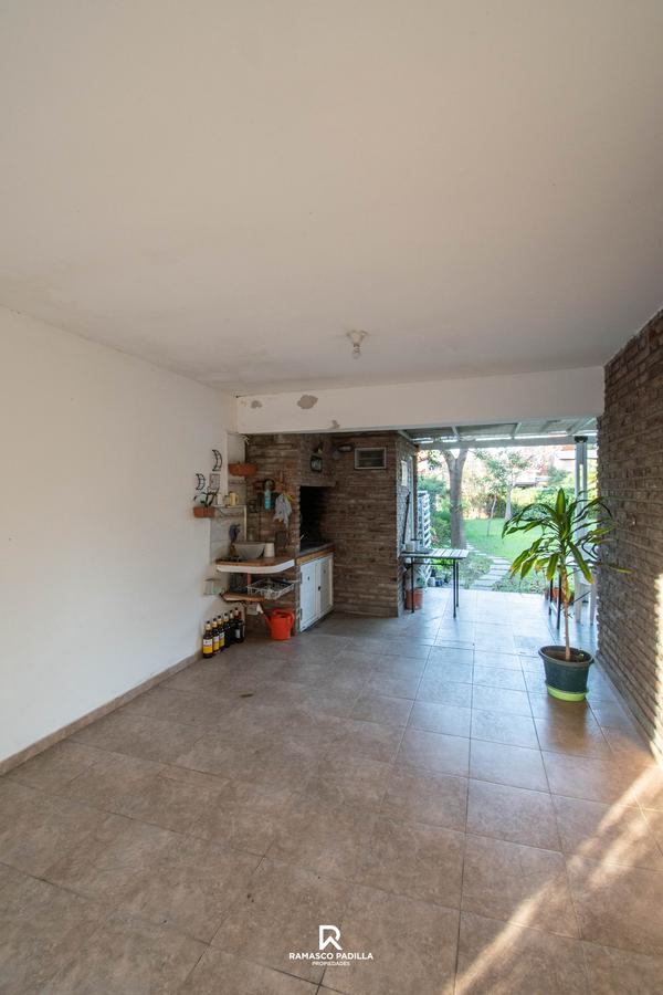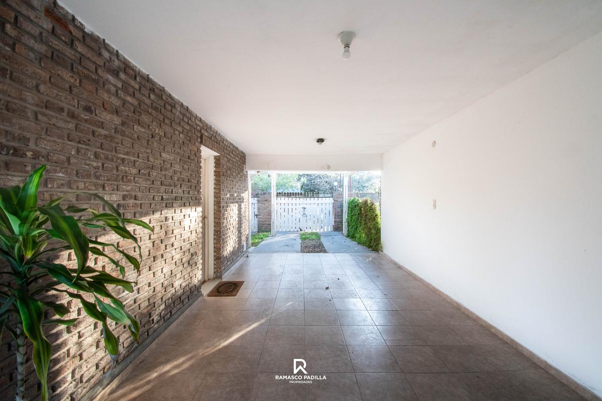 Ingreso a la propiedad por el frente, teniendo una cochera pasante techada para dos vehículos. La cochera cuenta con una galería pasante con parrilla y un espacio de guardado. También cuenta con un amplio Jardín con espacio para hacer una pileta. Ingresando a la casa por el frente tenemos un comedor diario cómodo y un living comedor con hogar. En la misma planta está la cocina semi integrada a un comedor diario, con lavadero independiente y un baño completo.