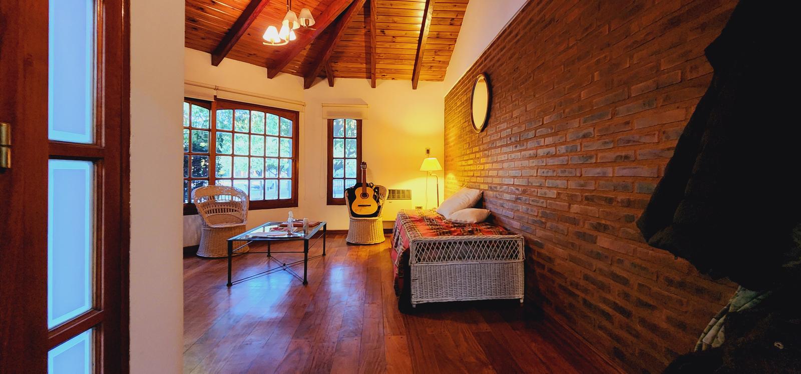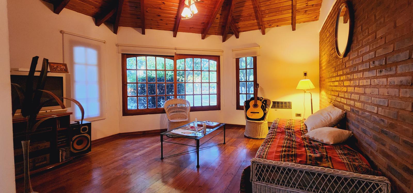 Características:-Excelente estado de conservación. -Ventiladores de techo y aires acondicionados en todos los ambientes.-Gas natural. -Ventanales en todos los ambientes. – Techos de madera en excelente estado. -Superficie: 100m2 cubiertos