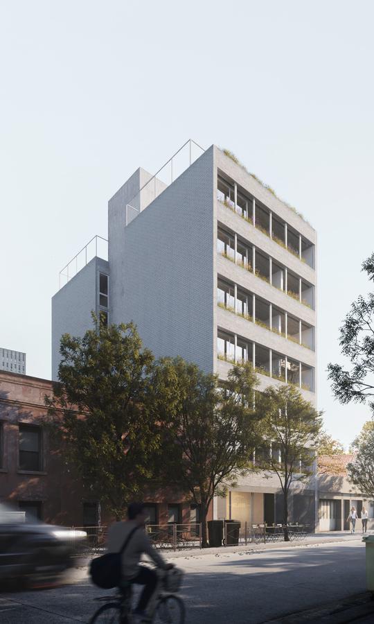Proyecto: Edificio de planta baja más 6 pisos con local comercial, 2 niveles de cocheras por rampa móvil y viviendas en 6 plantas con monoambientes, 1 y 2 dormitorios. Último piso con unidades de terrazas exclusivos, unidades dúplex de 1 dormitorio, piso 1 con unidad con patio y parrillero. Control de acceso. 1 ascensor.