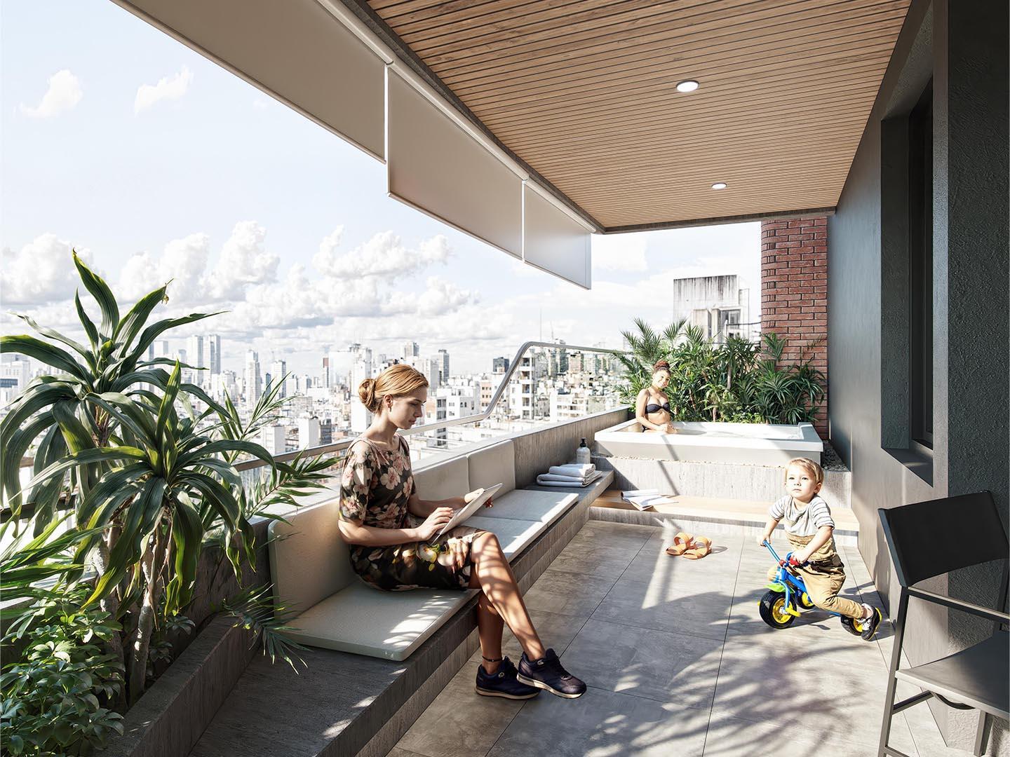 Caracterisiticas: -Controles de acceso y eguridad con tecnologia de punta. -Todos sus espacios monitoreados por camaras de alta definición y teconología de punta, con reglas de Inteligencia Artificial, abarcando desde el exterior, palieres, ascensores, espacios comunes, etc; y filmando 24hs y a libre disposición de cada usuario.-Pantalla táctil en unidades y espacios comunes situadas en espacios estratégicos para visualización de cámaras e intercomunicación entre todo el edificio.-Wifi gratuito en espacios comunes.-ASCENSORES: Equipos de última generación y alta velocidad con terminaciones en acero y vidrio y con panel táctil digital. Equipos dotados con cámaras de seguridad en su interior. Control de acceso para ingreso a los mismos.-FITNESS CENTER: Gimnasio equipado con tecnología de avanzada. Sector outdoor.-MUROS Y TERMINACIONES: Doble muro compuesto aislado para máxima calidad térmica. Terminación con yeso en paredes y cielorraso.-ABERTURAS: Cerramiento de aluminio o similar de alta prestación con vidrios DVH (doble vidriado hermético).-PUERTAS: Puerta de seguridad de ingreso a departamentos con tecnología de avanzada. Puertas interiores de alta prestación con marcos y hoja de WPC, con herrajes de tecnología, hermeticidad y alto peso específico.-PISOS Y REVESTIMIENTOS: Pisos, revestimientos y zócalos de primera línea.-MOBILIARIO DE COCINA: Alacenas y bajo mesadas de diseño: MDF 18mm laminados con filos de PVC. Conexión para iluminación en mobiliario. Bacha de acero inoxidable con griferías de primera linea. Horno embutido y anafe separados sobre mesada. Espacio previsto para purificadores de aire. Mobiliario para lavarropas y termotanques-EQUIPAMIENTO DE BAÑOS: Sanitarios y griferías de primera marca. Bañera sin mampara. Vanitory de diseño o mesada de mármol con bacha de apoyo. Accesorios de baños y espejo retroiluminado.PLACARES: Placares completos con frente corredizos o puertas, fondos y laterales en madera revestidos en su totalidad.-Calefacción por medio de radiadores en ambientes principales y dormitorios, regulados mediante termostatos digitales inteligentes.AIRE ACONDICIONADO: Preinstalación para equipos de aire acondicionado.
