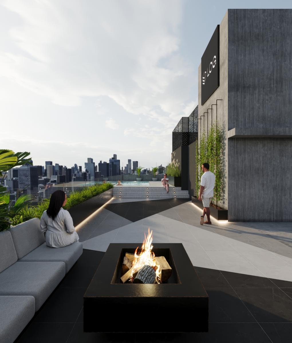 En primer piso oficinas con ingreso independiente. Desde el piso 2 al 10 unidades de vivienda, con tipologia de 1, 2 y 3 dormitorios.Terraza con amenities: Piscina – SUM – Quincho – Parrillero. Tres niveles de cochera.