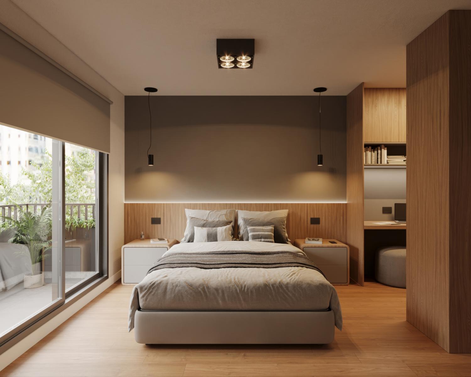 En primer piso oficinas con ingreso independiente. Desde el piso 2 al 10 unidades de vivienda, con tipologia de 1, 2 y 3 dormitorios.Terraza con amenities: Piscina – SUM – Quincho – Parrillero. Tres niveles de cochera.