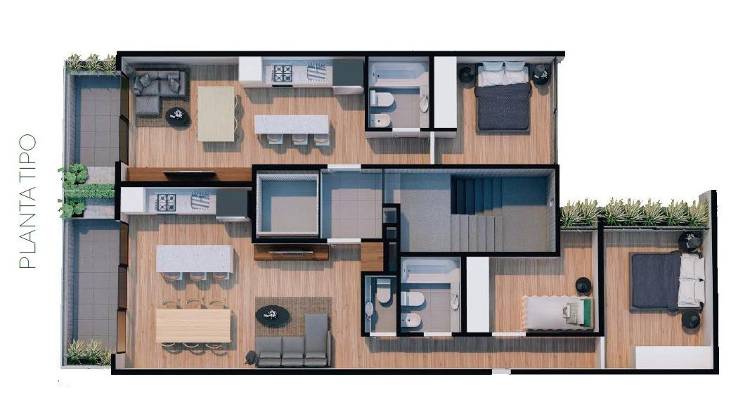 . Terminaciones de excelente calidad. . Uso intensivo de hormigón visto, en su mayoría de tabla y laminado, aplicado tanto en fachadas como en interiores.. Paredes y cielorrasos en yeso monocapa con molduras perimetrales. . Puertas de ingreso con diseño exclusivo y cerraduras de seguridad certificadas. . Porcelanatos de primera línea en todos los espacios. . Amoblamientos Johnson de categoría premium. . Aberturas línea ALUAR A30 con DVH laminado, optimizando seguridad y confort térmico. . Griferías FV con cierres cerámicos mono comando en baños y cocinas. . Excelente balance térmico en todas las unidades, con preinstalación para aire acondicionado, caldera dualindividual y preinstalaciones para radiadores. ?Certificación en aspectos higrotérmicos y eficiencia energética, asegurando un estándar constructivo superior.