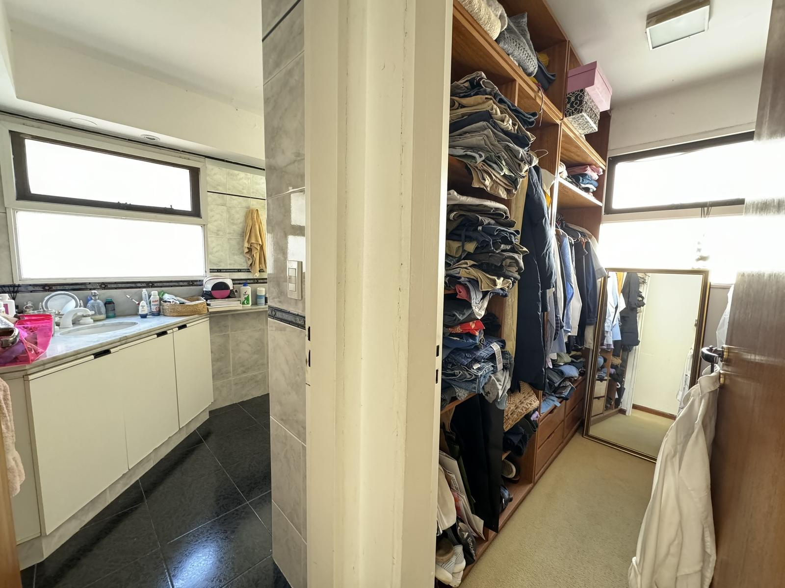 El dormitorio principal destaca por su baño en suite, vestidor y un balcón privado. Los otros dormitorios son de generosas dimensiones y cuentan con placares empotrados. Todos los espacios están equipados con calefacción y refrigeración central, garantizando el máximo confort en todas las estaciones.