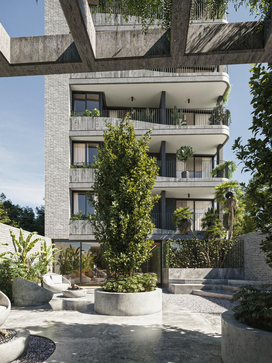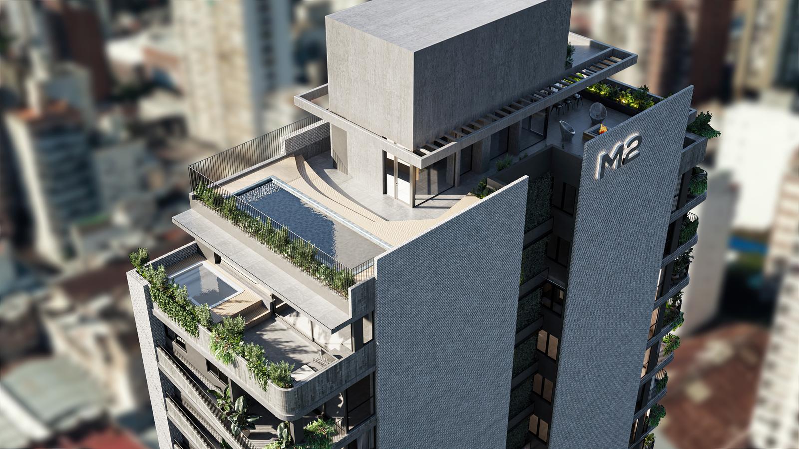 Proyecto: Se trata de una torre de 14 pisos, con departamentos de 1, 2 y 3 dormitorios. La misma posee 3 niveles de cocheras. El edificio cuenta con espacios verdes de uso común, gimnasio y bauleras. Las unidades de 3 y 4 dormitorios son de categoría premium. En la terraza del edificio, se podrá disfrutar de una piscina panorámica, un amplio solárium, un quincho semicubierto, kids zone intervenida por Crucijuegos y un living fogonero.