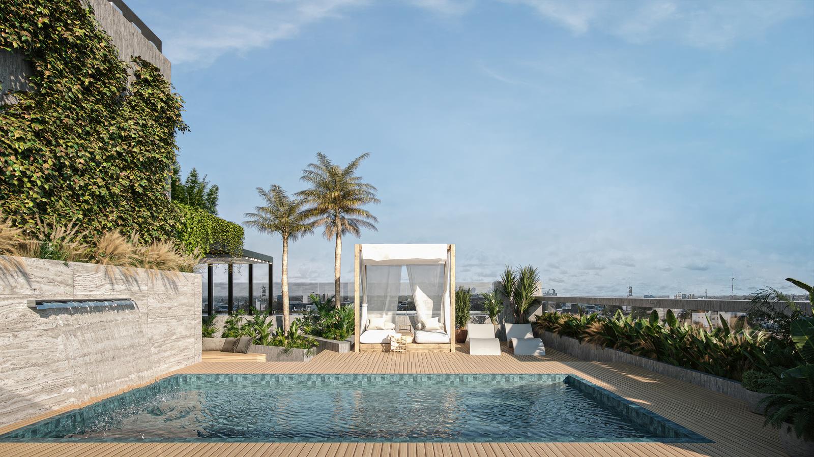 Descripción General: DEPARTAMENTO EN PISO EXCLUSIVO EN PLANTA 13°. EDIFICIO DE PB + 13 PISOS .La unidad cuenta con 3 amplios dormitorios (uno de ellos con vestidor + baño completo en suite), baño completo en intimo + toilette en sector social (haciendo un total de 2 baños completo + 1 de servicio), Lavadero separado, amplia cocina con isla, living comedor de amplísimas dimensiones con salida a un balcón terraza de 33.5 m2 con pileta exclusiva, parrillero y bacha.