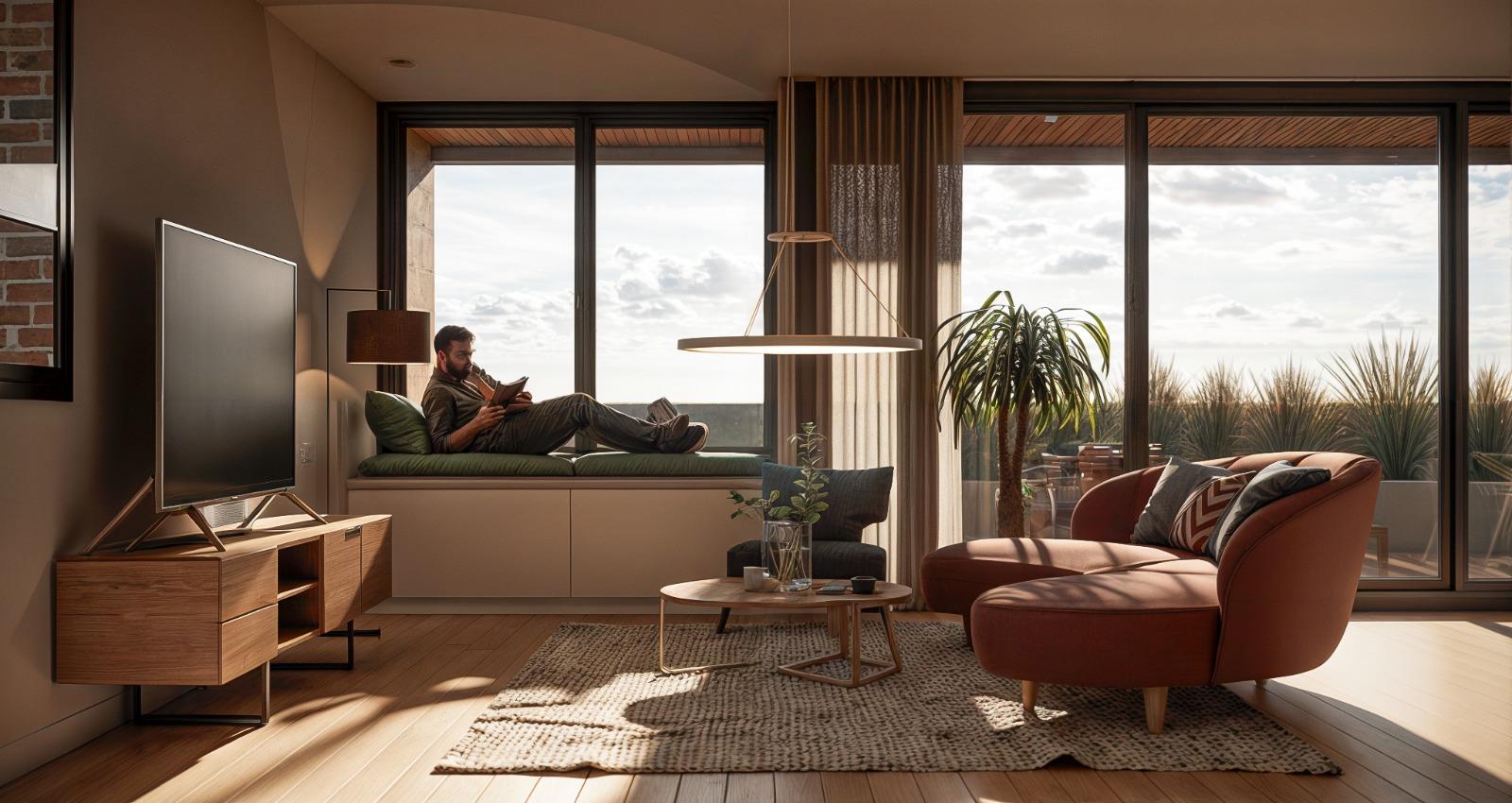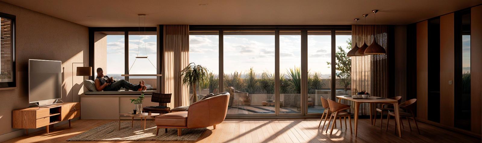Departamentos: Cerramientos de aluminio de alta prestación con vidrios DVH (doble vidriado hermético), Puertas de seguridad para ingreso con cerradura multi anclaje y llaves exclusivas.