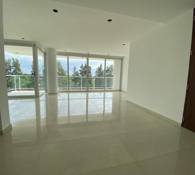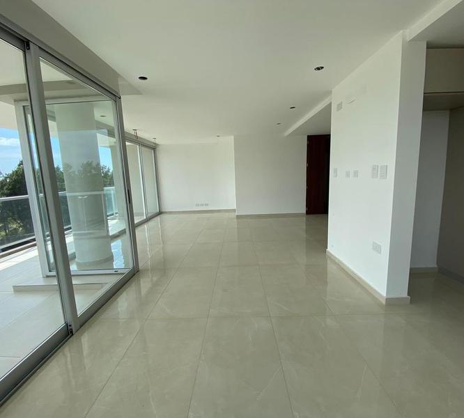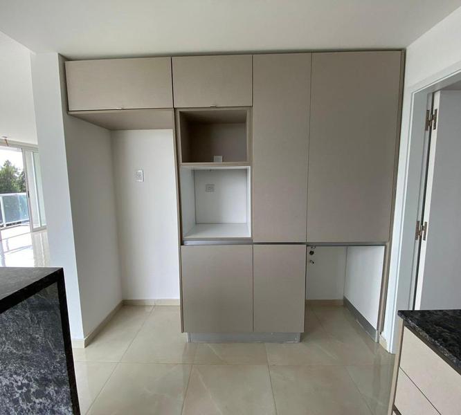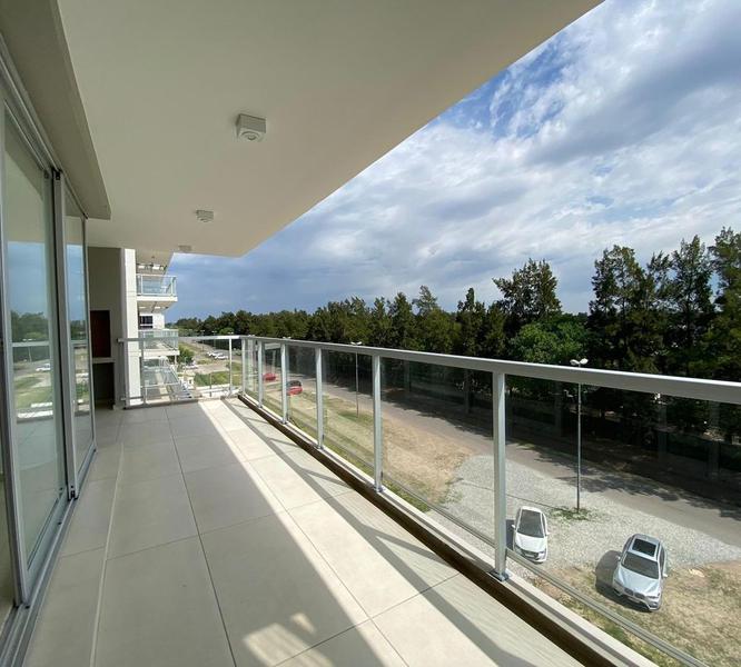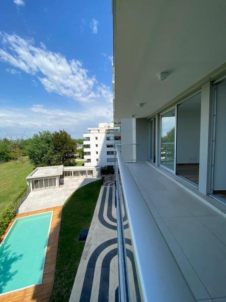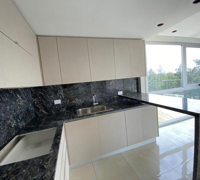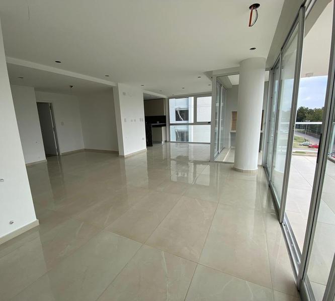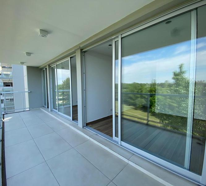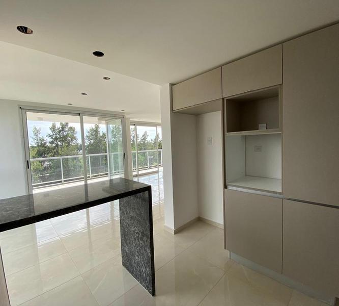 Se accede al edificio por una importante recepción con ascensores modernos, el cuál nos lleva al palier que comparte con otros dos departamentos. Se ingresa por puerta de madera de dos hojas que da al hall de recepción, integrado a un amplio living y comedor en concepto totalmente abierto, con una impactante vista verde y al lago del Barrio Aldea Lago. Salida inmediata a balcón aterrazado con parrillero propio, a través de amplios ventanales a medida, de piso a techo, con marcos de aluminio y DVH, que garantizan una optima iluminación y eficiencia, tanto térmica como sonora. Cocina semi integrada con mesada de granito, amplios mobiliario de diseño con alacenas y bajo mesada, anafe por inducción y horno eléctrico empotrado. Bacha de acero inoxidable, grifería monocomando de calidad.