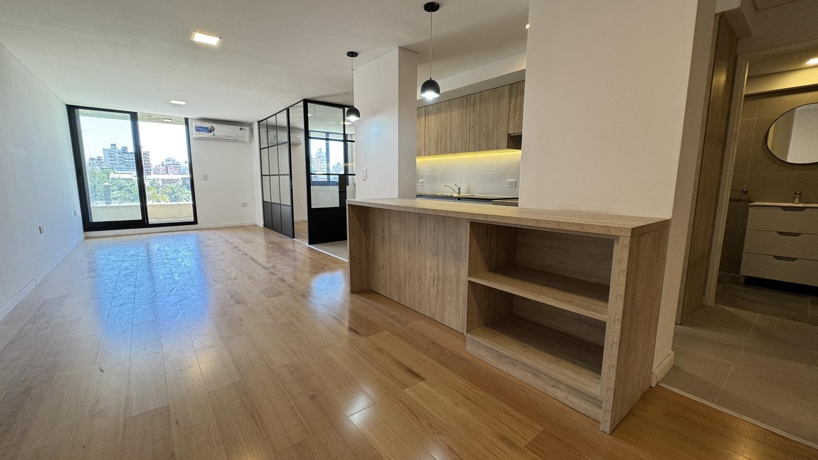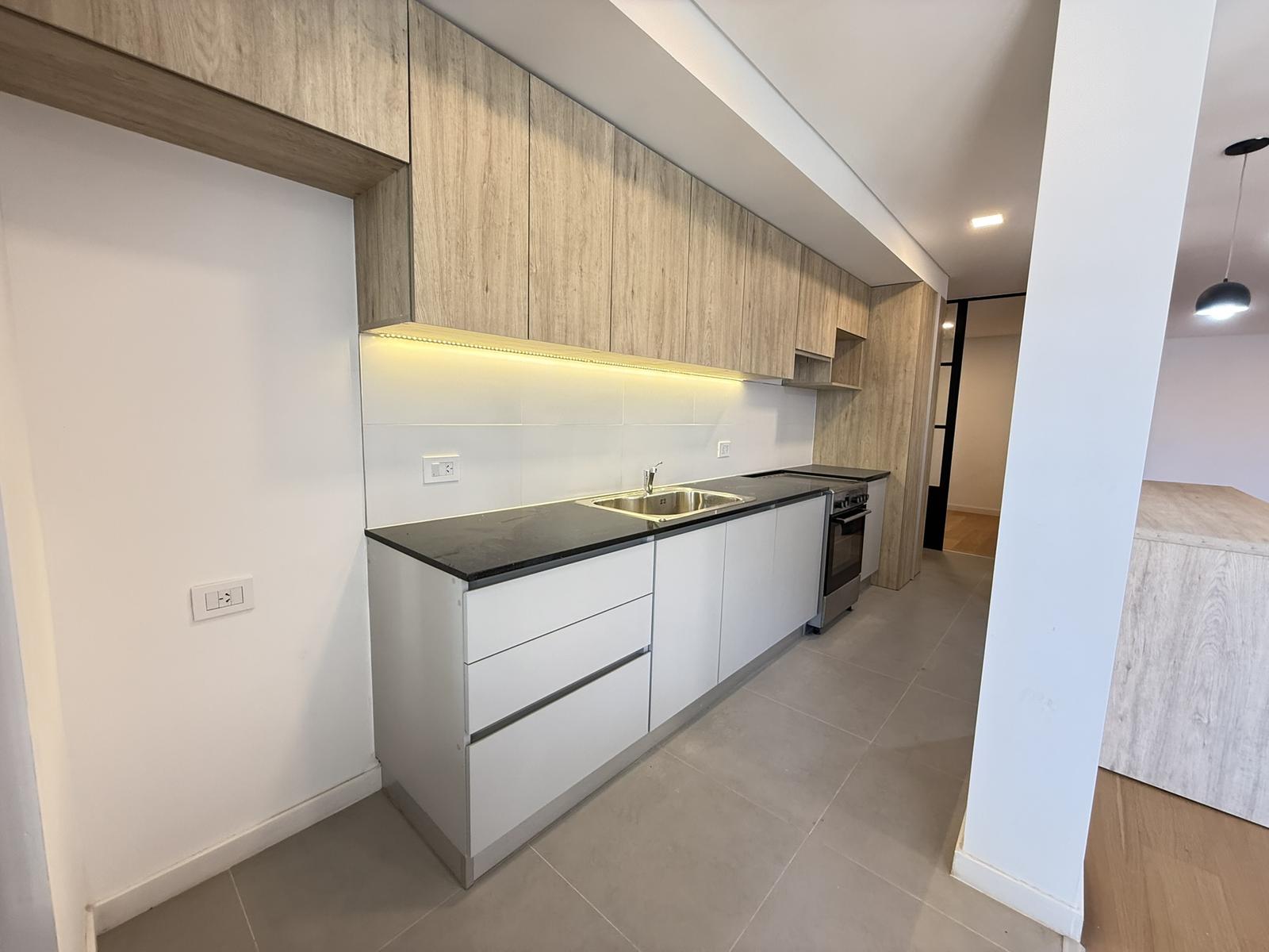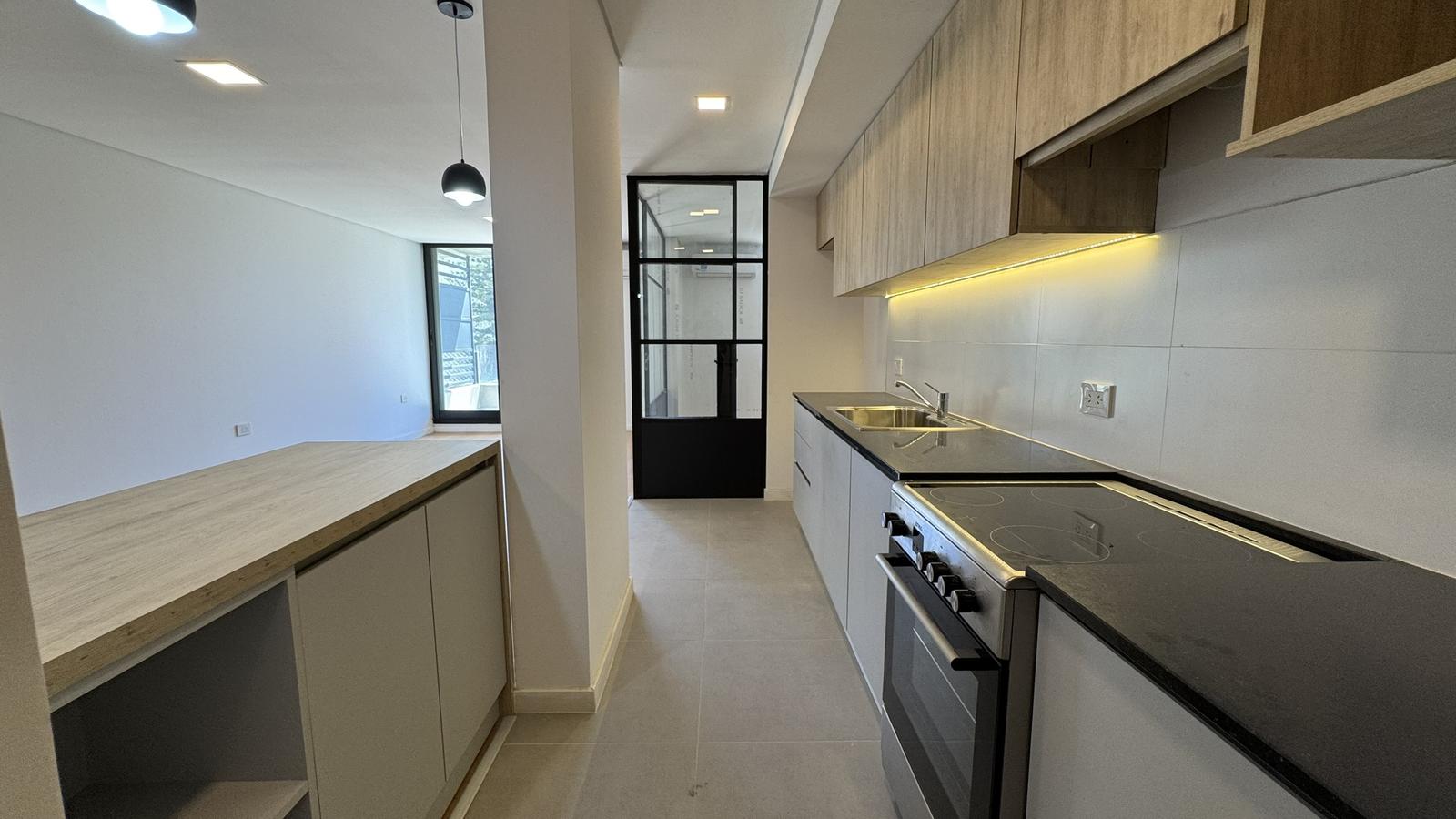 Unidad ELECTRICA.Equipada con aire acondicionado y luminarias led.Calefon y cocina electrica con horno y hornallas de vitroceramica. Muebles de cocina de primera calidad.Pisos flotantes melaminicos en estar y dormitorio.Mesada de granito y bacha de acero inoxidable.Portero electrico con visor y cerradura electronica con huella digital.Placares con interiores completos.Aberturas con DVH.Superficie exclusiva: 95 m2.Orientacion: Norte.