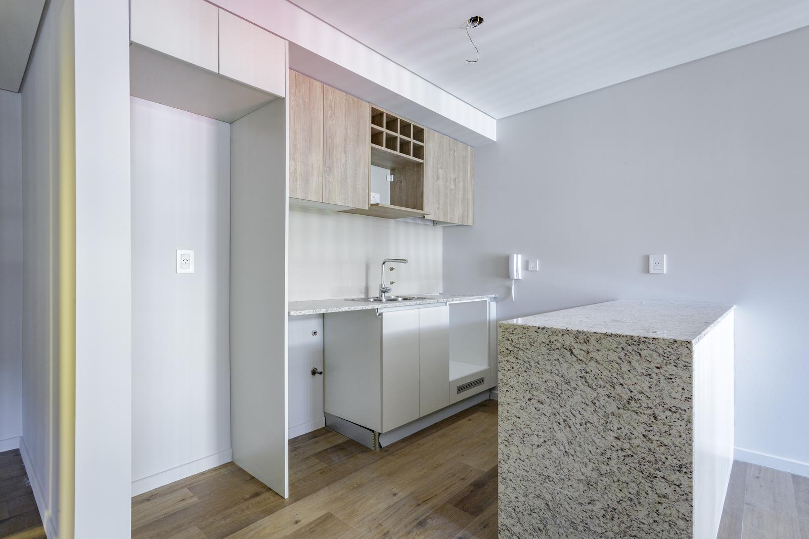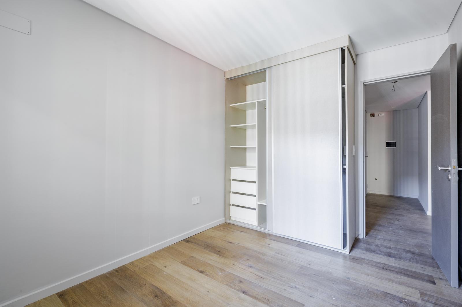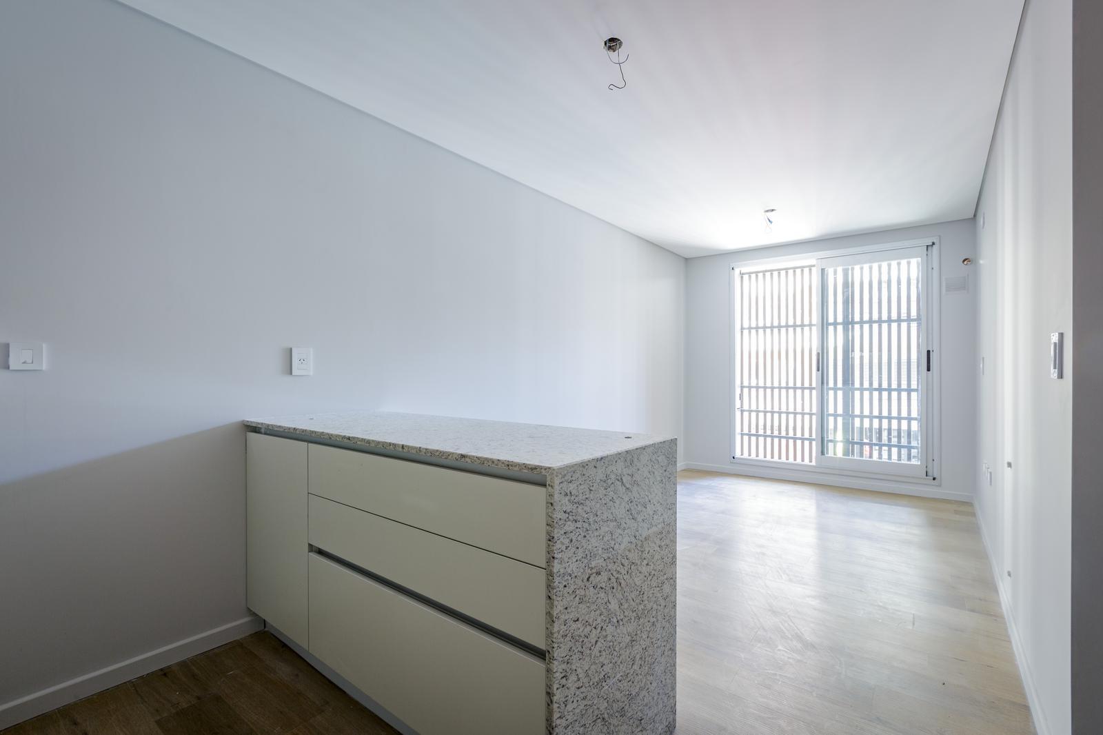 Descripción de la unidad: Departamento de 1 dormitorio, ingreso por living comedor con cocina intergada + barra desayunadora. Muebles de cocina completos: bajo mesada, alacenas, porta microondas, bodeguero; mesada en granito gris, pileta de acero inoxidable y gritería monocomando. Placard empotrado completo con guias de aluminio. Unidad al frente con disposición Sur.