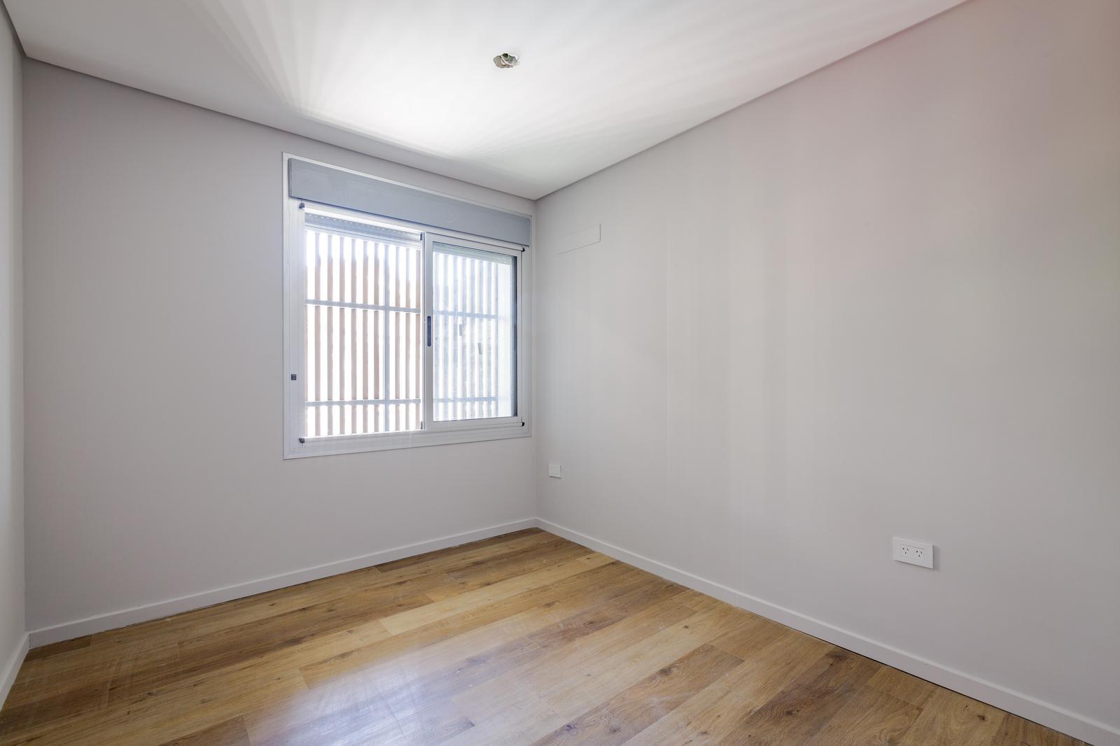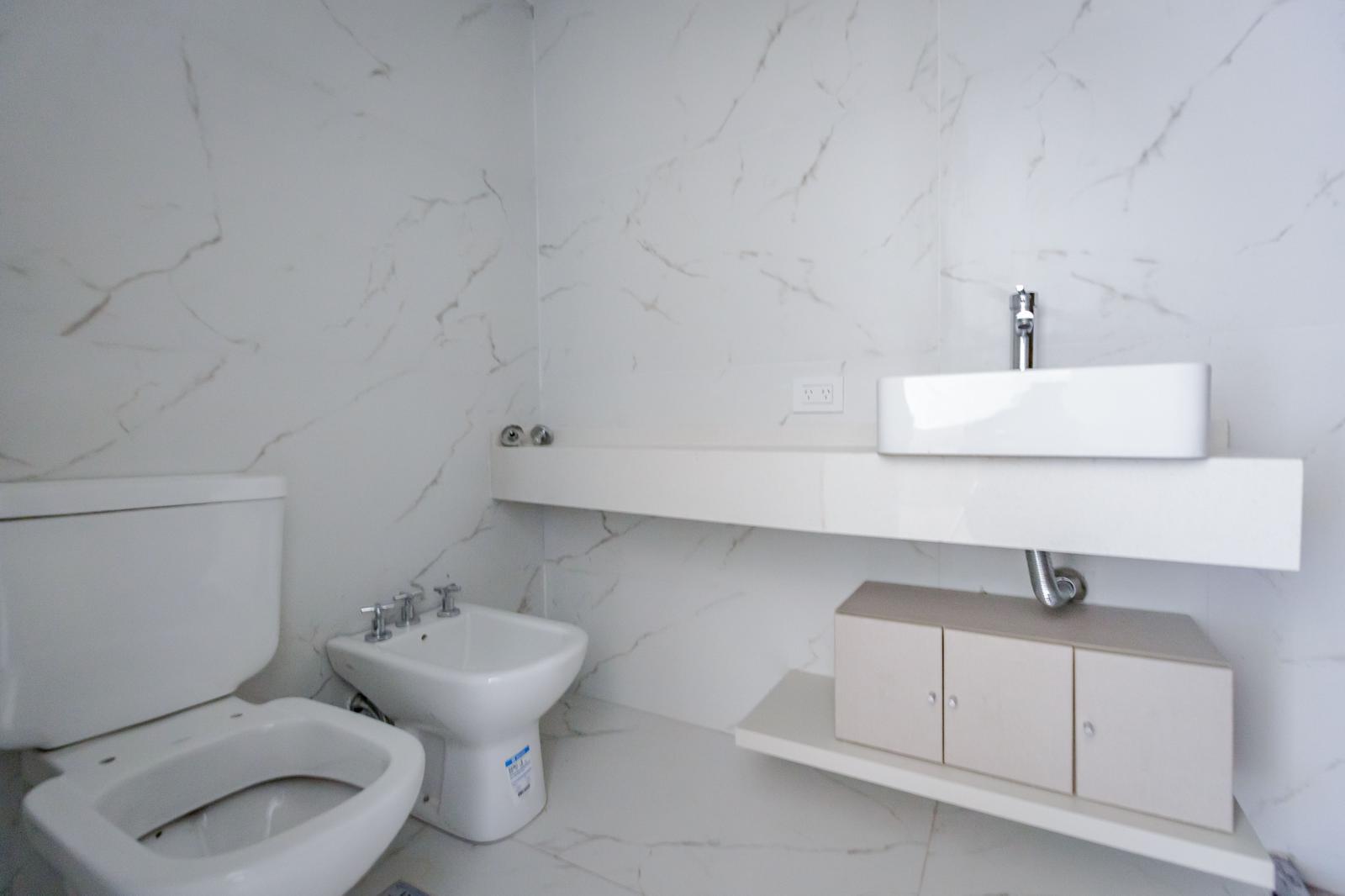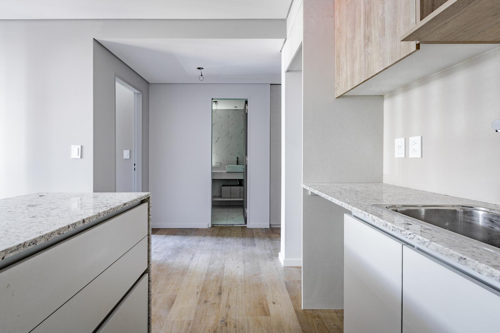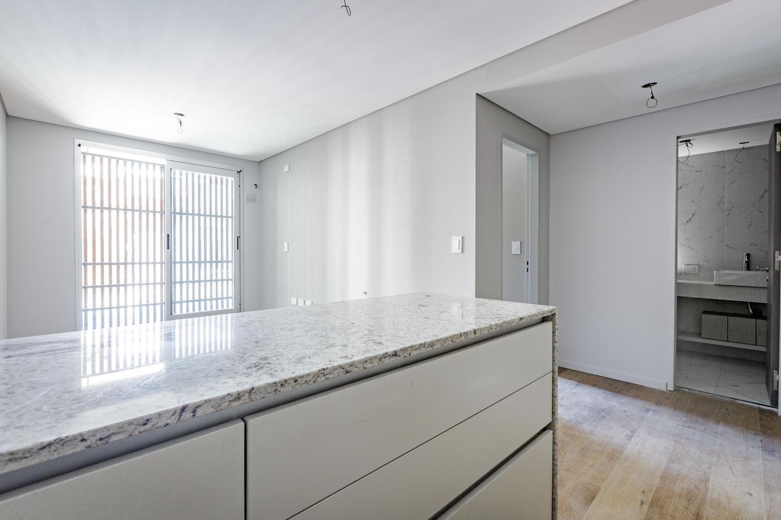 Descripción de la unidad: Departamento de 1 dormitorio, ingreso por living comedor con cocina intergada + barra desayunadora. Muebles de cocina completos: bajo mesada, alacenas, porta microondas, bodeguero; mesada en granito gris, pileta de acero inoxidable y gritería monocomando. Placard empotrado completo con guias de aluminio. Unidad al frente con disposición Sur.