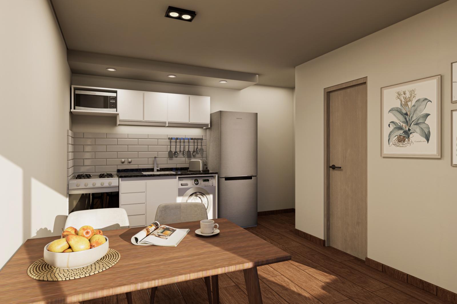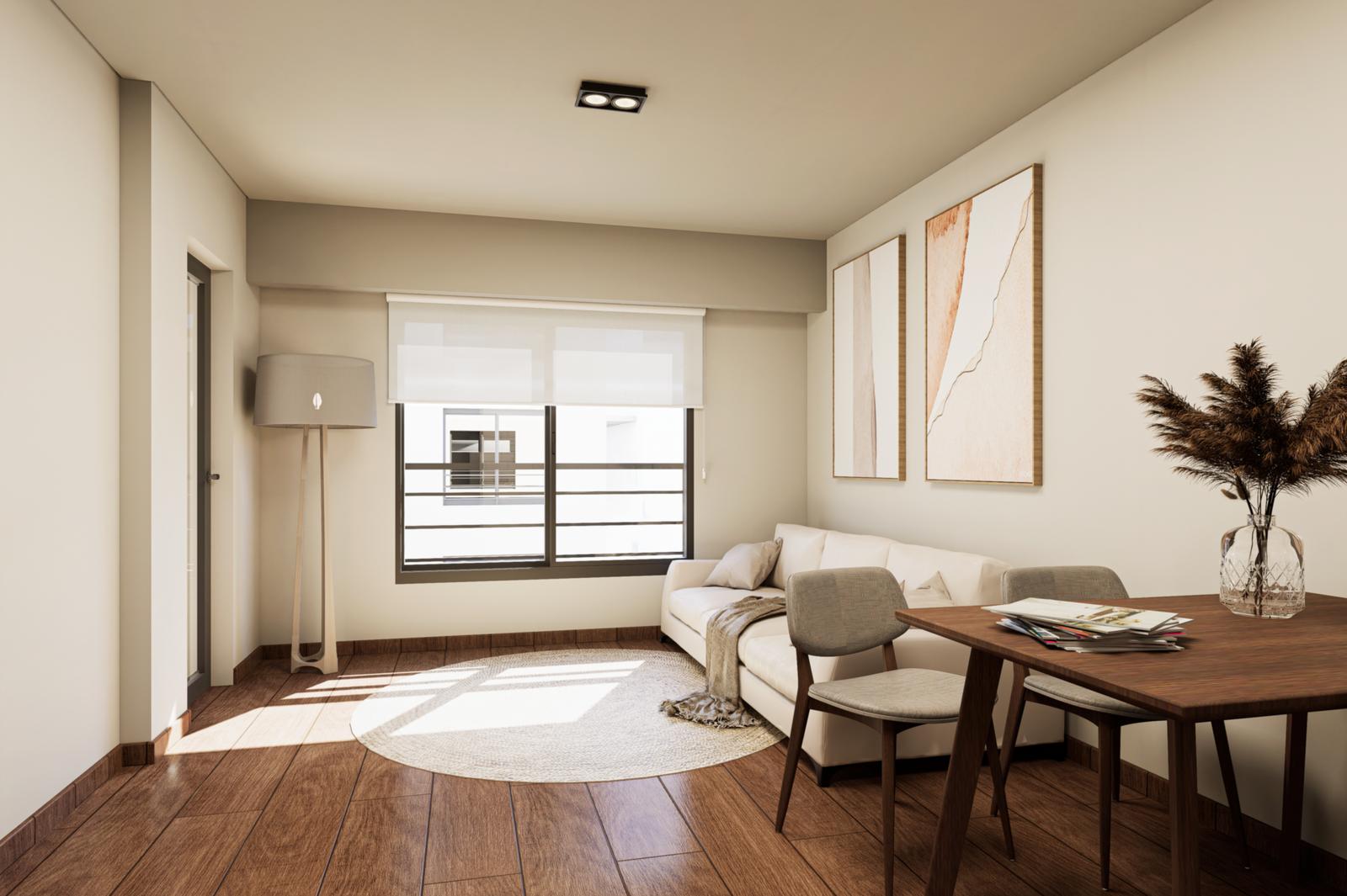 Terminaciones constructivas: Estructura de hormigón armadoMuros de ladrillo cerámico, terminación en yeso proyectadoAberturas de aluminio anodizado naturalRevestimientos: Cerámicos de primera línea en baños y cocinasPisos: Porcelanato o similar en todos los ambientesInstalaciones: Preinstalación de aire acondicionado tipo split, agua caliente por termotanque eléctricoCocina integrada con mobiliario completo y mesada de granito