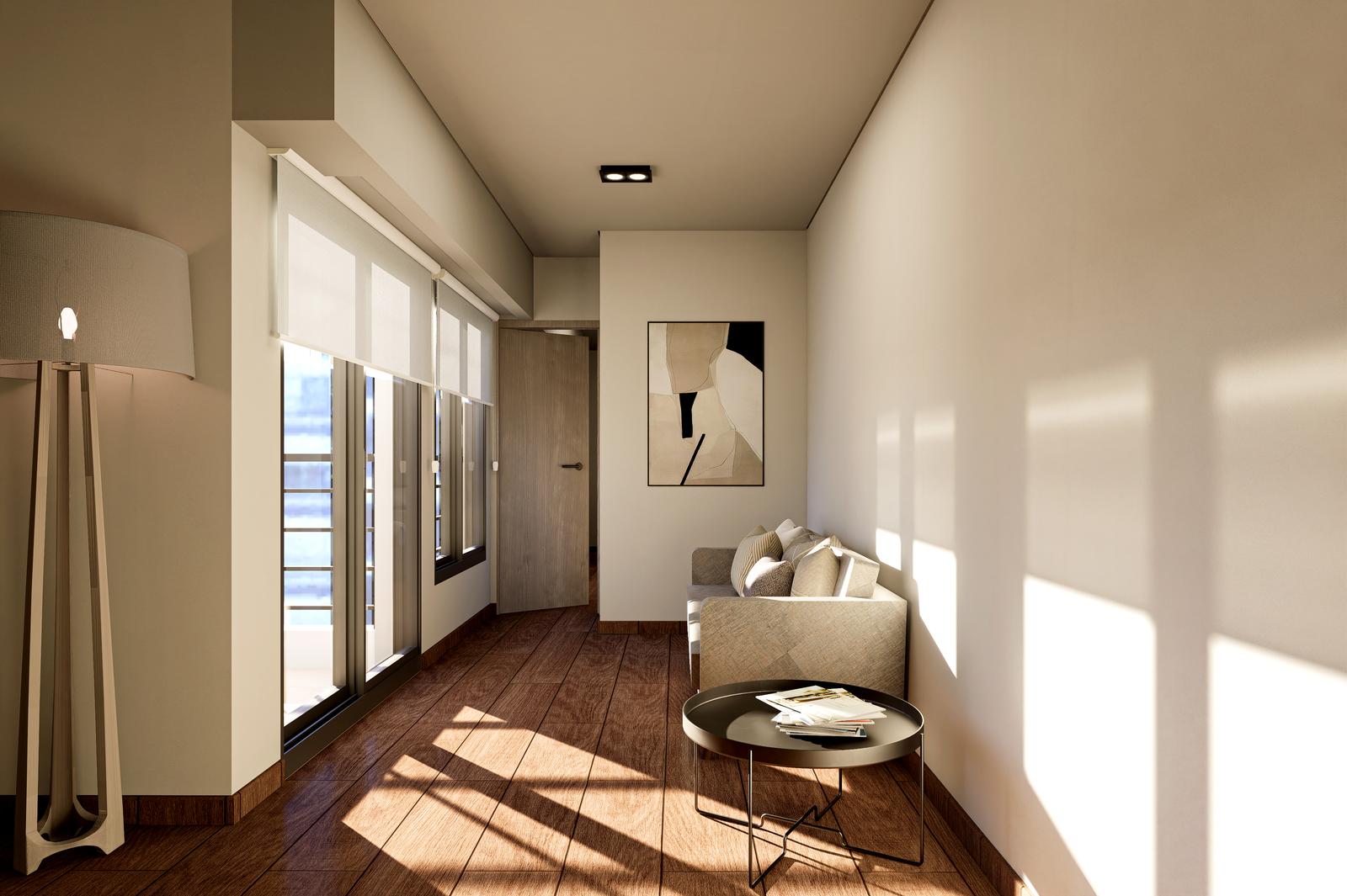 Proyecto: Edificio compuesto por unidades de 1 dormitorio y monoambientes desde 30m2 hasta 55m2 . Cuenta con Subsuelo con cocheras, Planta baja con local comercial y departamentos con patio, 2 núcleos separados de ascensores (2 unidades), control de acceso y 8 pisos con unidades residenciales más una tercera torre de planta baja y 1 piso mediante escalera. Azotea común. Bicicletero.