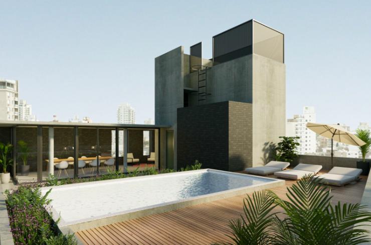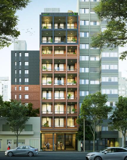 Proyecto: El edifico se compone desde subsuelo, PB + 9 pisos con departamentos de 1,2, y 3 dormitorios. Cocheras en subsuelo y pb, con un local comercial. Ademas, cuenta con una terraza comun con piscina, SUM y parillero.