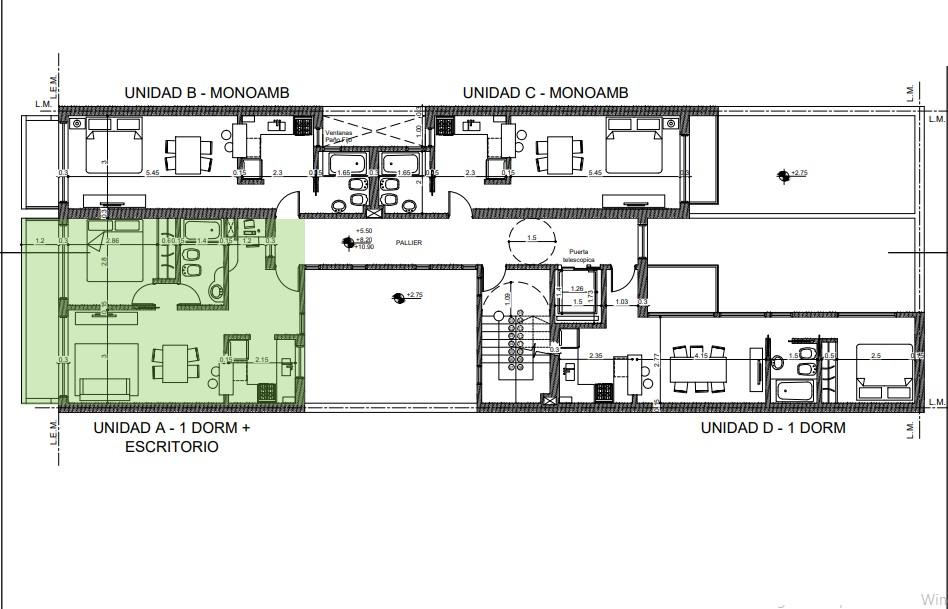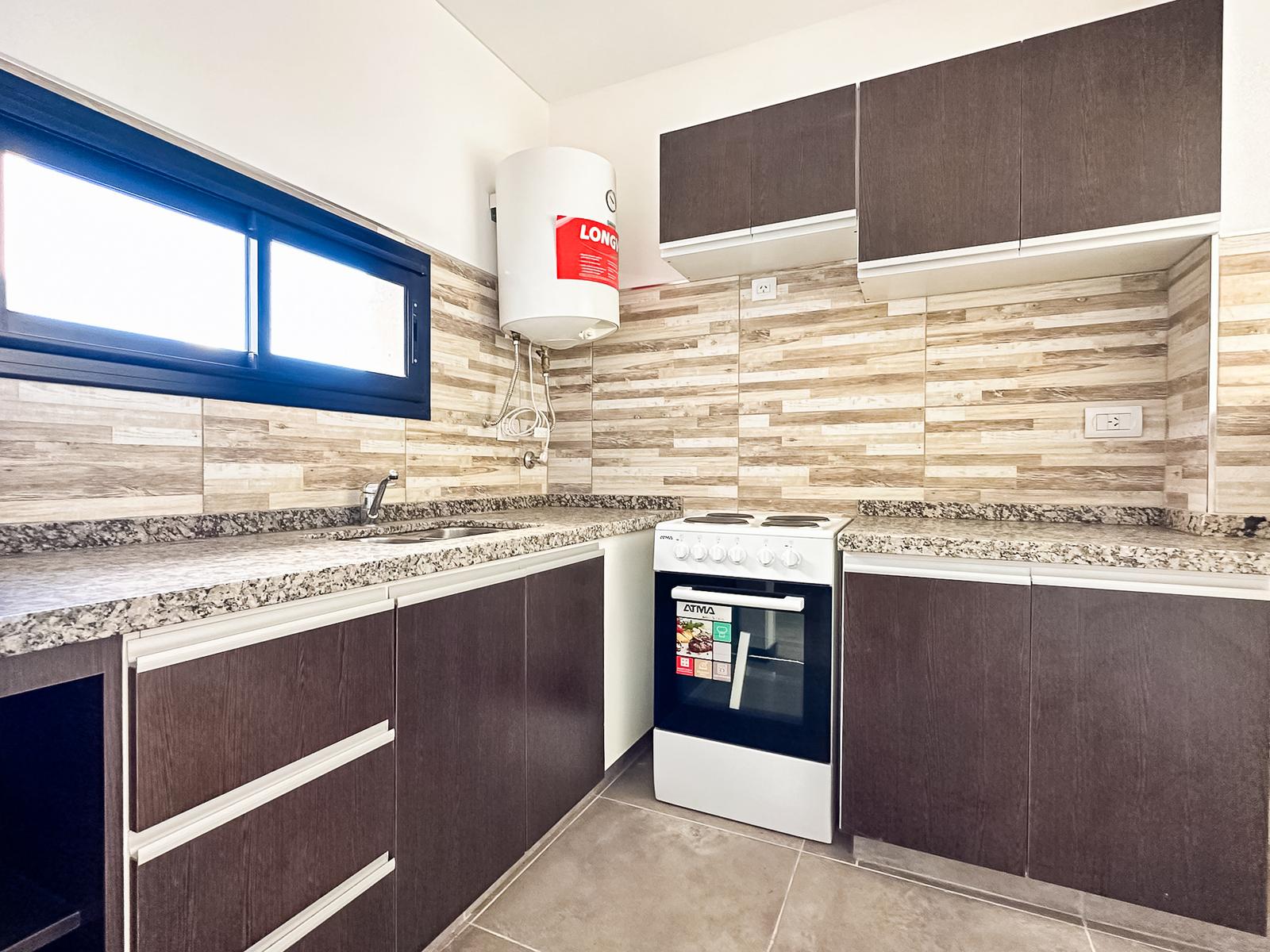 Unidad en cuarto piso, al frente.Departamento de 1 dormitorio con balcon. Cuenta con espacio de escritorio.Ventilacion cruzada, luminoso.Dormitorio con placard y piso flotante de melamínico de alto tránsito.Sector para lavarropas. Termotanque y artefacto de cocina eléctricosEdificio electrico. A estrenar.Superficie exclusiva: 53,94 m2 (46,80 m2 cubiertos y 7,14 m2 de balcon)Orientacion: Oeste.Antiguedad del edificio: 5 años.Expensas aproximadas: $65.000.-Entrega inmediata.