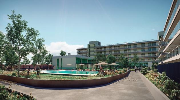 Amenities: Parrilleros; Salón de usos múltiples con vista al centro del complejo.; Piscina, vestuarios y sanitarios.; Área verde de relax, silencio y lectura en jardín central. Plaza de juegos para niños. Amplias piscinas, una para niños y otra para adultos con solárium. Área de gimnasio y spa. Espacios Multifunción.