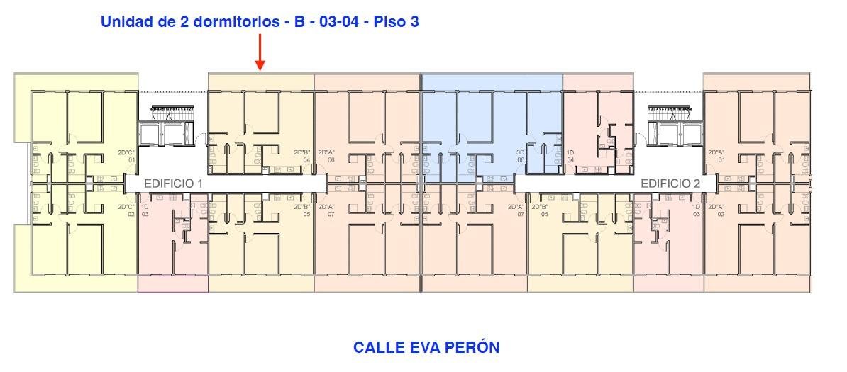 Ubicacion: Barrio Fisherton. Se encuentra sobre Av. Eva Paron, esquina con Ugarteche. El ingreso peatonal al complejo está situado sobre Calle Ugarteche, y desde el amplio patio central del complejo se accede al conjunto de edificios.