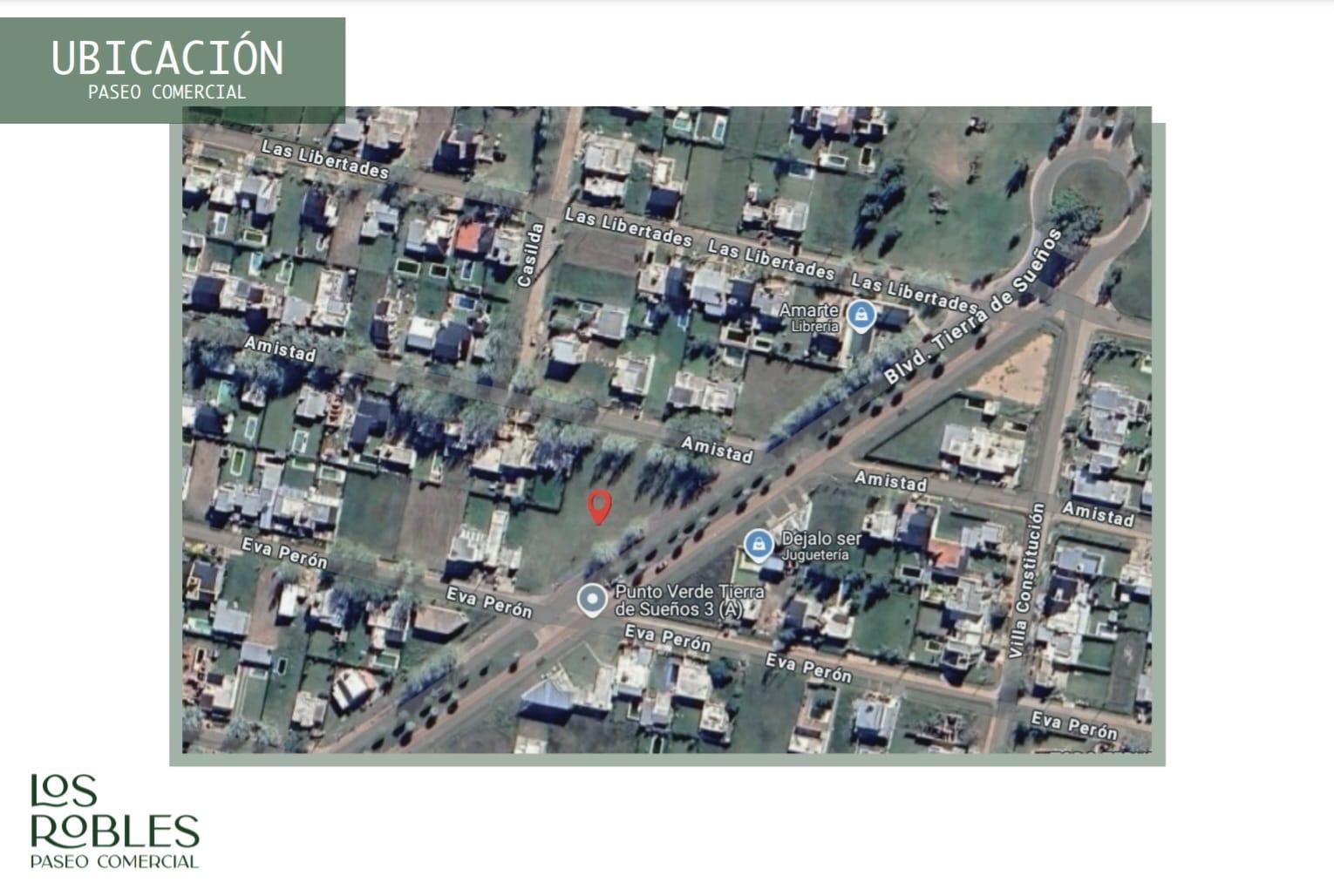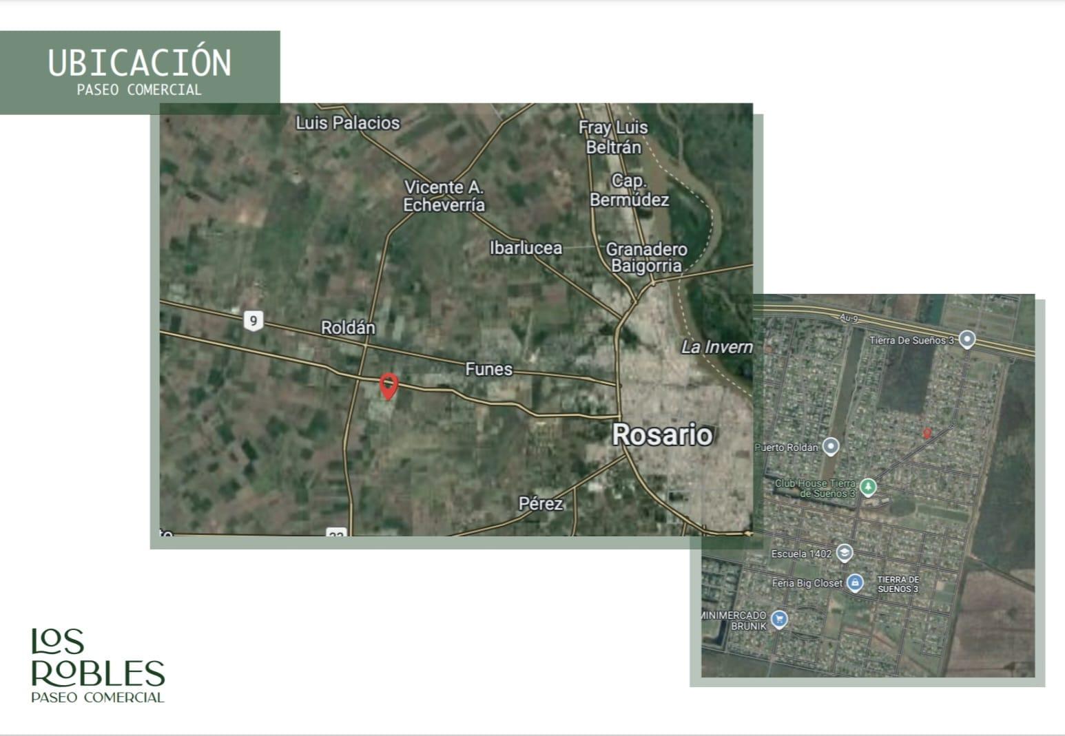 Ubicación: Blvd. Tierra de Sueños entre Amistad y Eva Perón, se encuentra en el corazón de uno de los desarrollos urbanísticos con mayor crecimiento de la región, el nuevo paseo comercial se encuentra en Tierra de Sueños 3, Roldán – una zona en plena expansión, con un gran movimiento residencial y comercial. A solo minutos de Rosario, con acceso directo por la Ruta Nacional 9 y muy próximo a la Autopista Rosario–Córdoba, el paseo comercial está rodeado de barrios modernos, casas de familia, complejos habitacionales y espacios verdes. Tierra de Sueños 3 es un polo de atracción para familias jóvenes, emprendimientos y vecinos que priorizan calidad de vida sin alejarse de los centros urbanos.